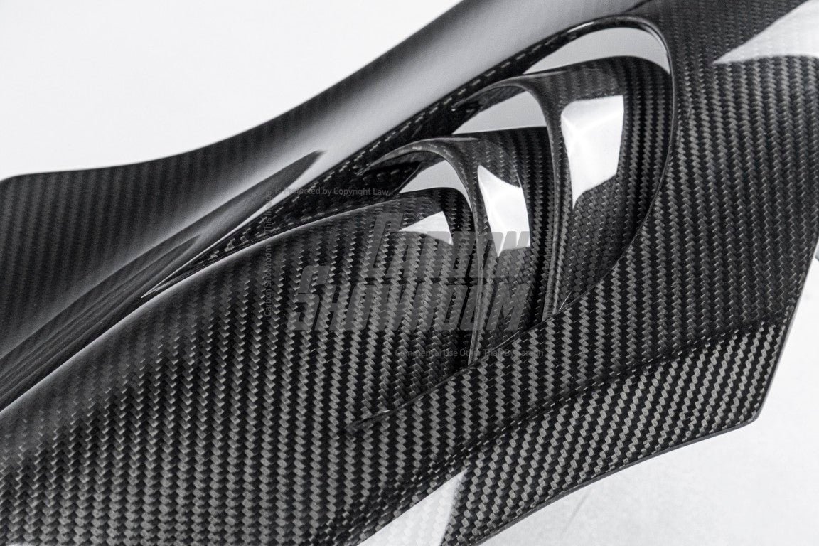Partial Pre-preg Carbon: - Partial Pre-preg (Dry) Carbon Fiber with UV Protection Clearcoat: Combination of FRP and Carbon Fiber, FRP (Fiber Glass) is a composite material comprised of carbon fiber reinforced polymers. FRP Part comes with primed finish ready to be sanded and painted. |