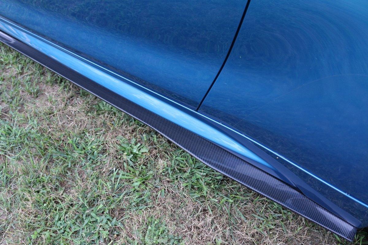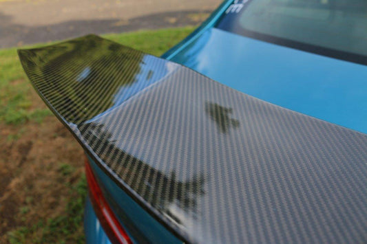 FRP is NOT Carbon Fiber and is a composite material of carbon polymers and fiberglass. Coming in a fresh sanded and primed finish, FRP is ready for paint or wrap! Carbon Fiber, depending on the brand and part, can be offered in Pre-Preg or Vacuum Carbon. Carbon Fiber is a woven pattern of carbon fibers, standard in a 3k weave.