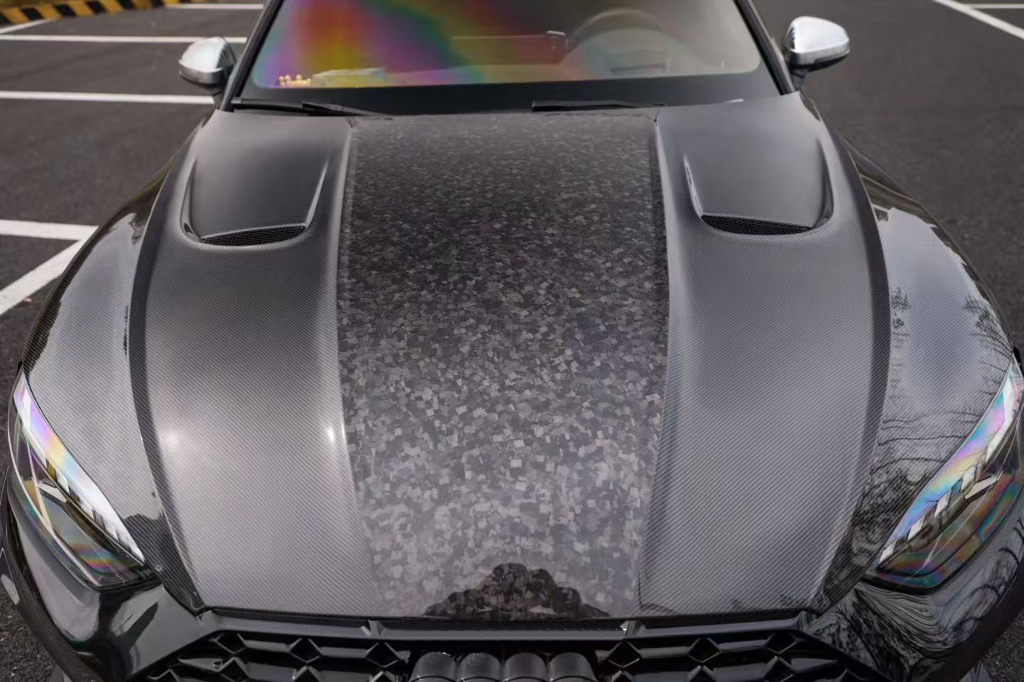 Forged (20% extra charge, made to order): Forged carbon fiber - a composite material made from randomly arranged, short carbon fiber strands combined with resin and compressed in a mold. Forged carbon fiber offers greater design flexibility compared to 3K woven carbon fiber, as it can be molded into more complex shapes without compromising structural integrity. Its random fiber orientation reduces weak points caused by the directional patterns in 3K weaves, enhancing impact resistance. Additionally, it has a unique aesthetic appeal, with a marbled texture that stands out from the uniform weave of 3K carbon fiber.