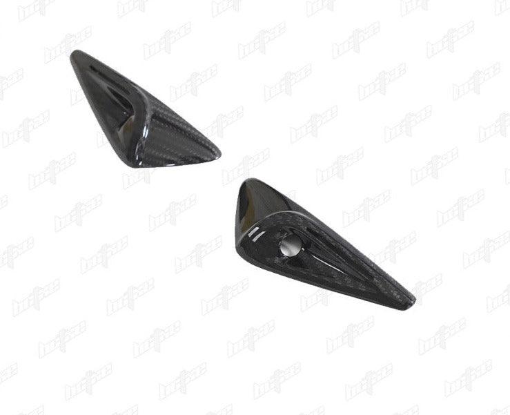 FRP is NOT Carbon Fiber and is a composite material of carbon polymers and fiberglass. Coming in a fresh sanded and primed finish, FRP is ready for paint or wrap! Carbon Fiber, depending on the brand and part, can be offered in Pre-Preg or Vacuum Carbon. Carbon Fiber is a woven pattern of carbon fibers, standard in a 3k weave.
