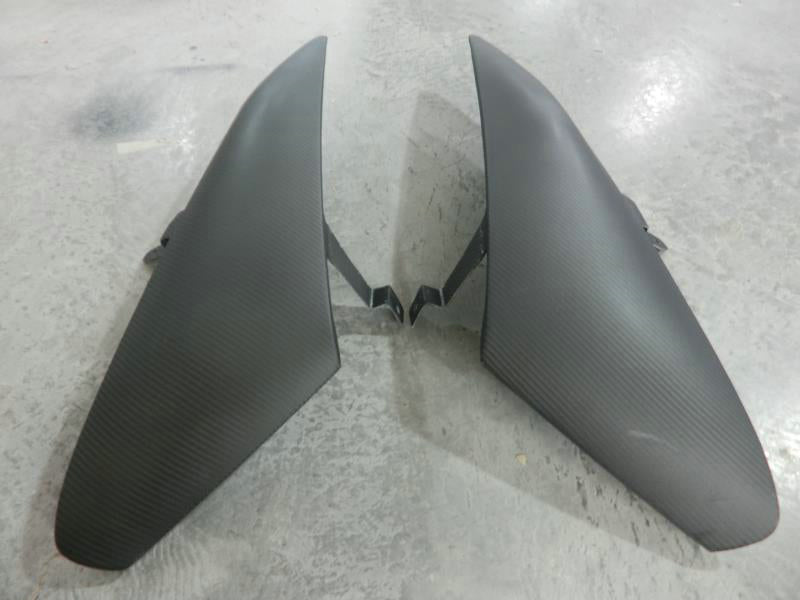 FRP is NOT Carbon Fiber and is a composite material of carbon polymers and fiberglass. Coming in a fresh sanded and primed finish, FRP is ready for paint or wrap! Carbon Fiber, depending on the brand and part, can be offered in Pre-Preg or Vacuum Carbon. Carbon Fiber is a woven pattern of carbon fibers, standard in a 3k weave.