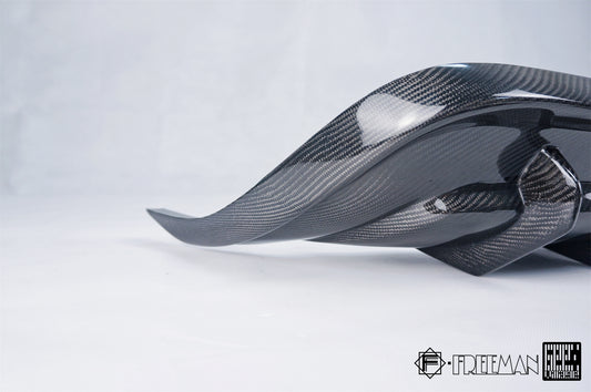 -Vacuum Carbon Fiber, also known as Wet Carbon, is placed into its mold with resin and vacuum sealed into its form. Both have the same finish but have different structural formulas.