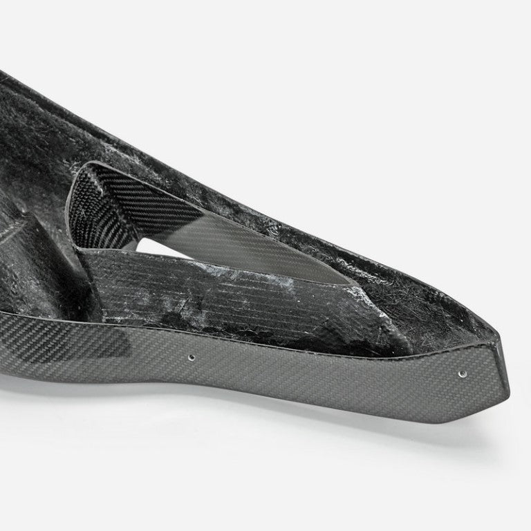 -Vacuum Carbon Fiber, also known as Wet Carbon, is placed into its mold with resin and vacuum sealed into its form. Both have the same finish but have different structural formulas.