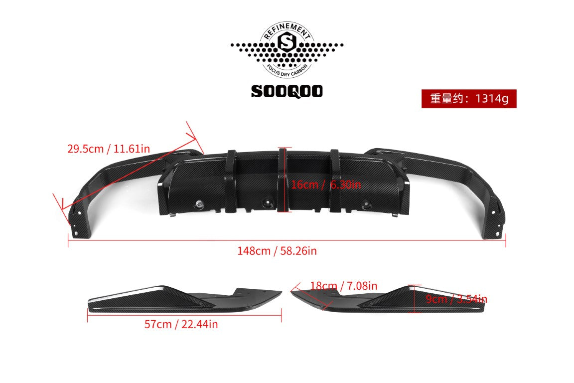 - SOOQOO USA Rear Diffuser & Canards for BMW M8 F91 F92 F93 Pre-preg Carbon Fiber