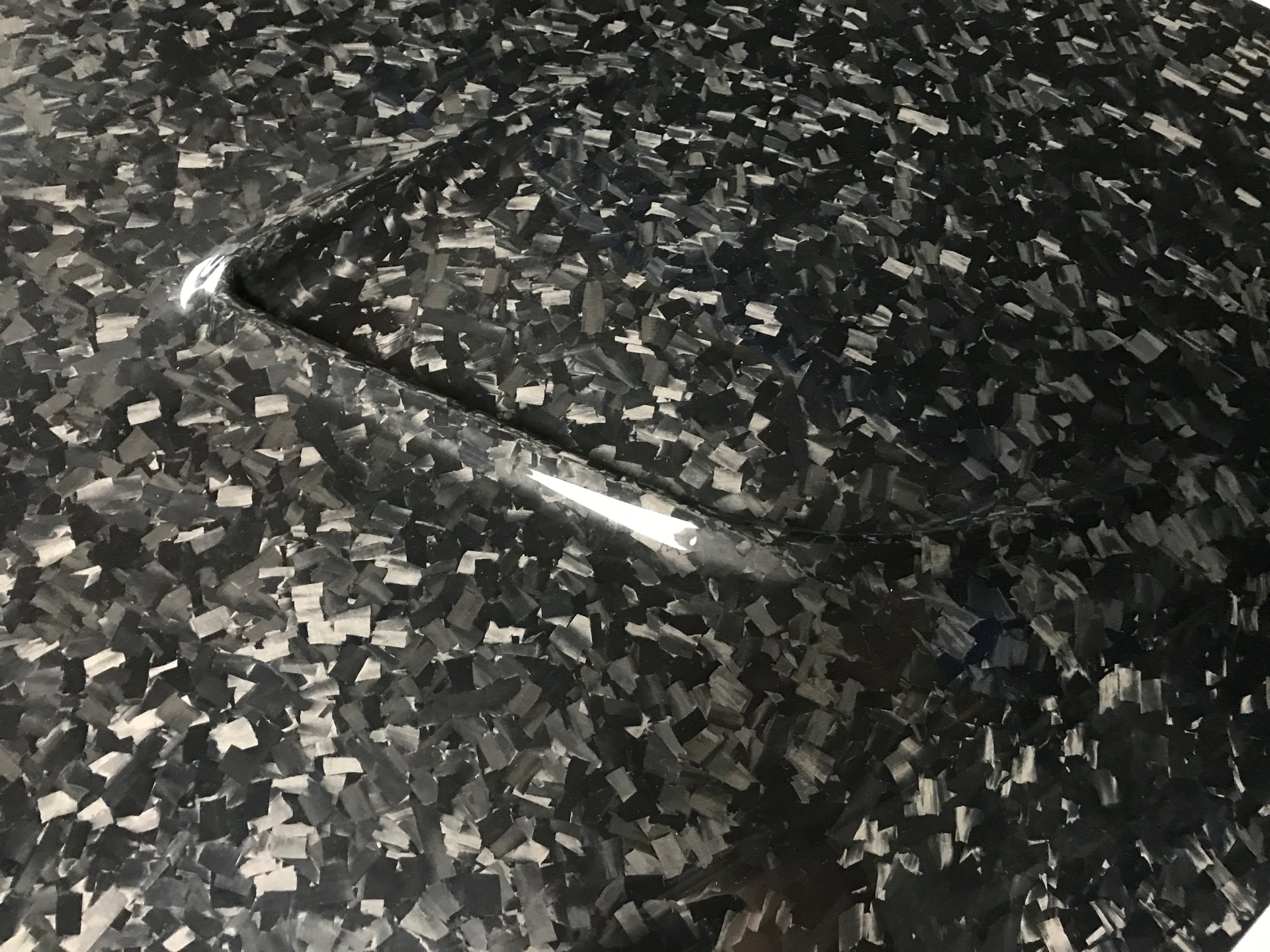 Forged (20% extra charge, made to order): Forged carbon fiber - a composite material made from randomly arranged, short carbon fiber strands combined with resin and compressed in a mold. Forged carbon fiber offers greater design flexibility compared to 3K woven carbon fiber, as it can be molded into more complex shapes without compromising structural integrity. Its random fiber orientation reduces weak points caused by the directional patterns in 3K weaves, enhancing impact resistance. Additionally, it has a unique aesthetic appeal, with a marbled texture that stands out from the uniform weave of 3K carbon fiber.