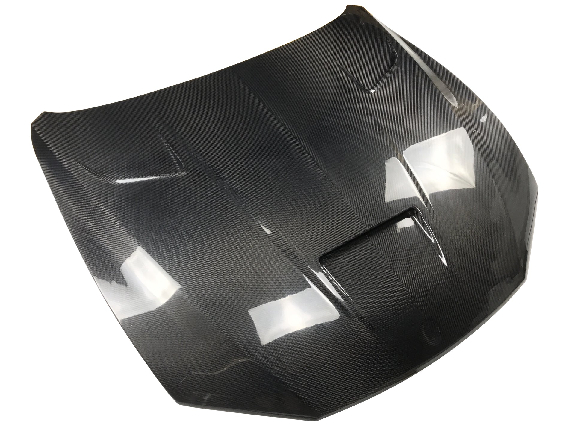 FRP is NOT Carbon Fiber and is a composite material of carbon polymers and fiberglass. Coming in a fresh sanded and primed finish, FRP is ready for paint or wrap! Carbon Fiber, depending on the brand and part, can be offered in Pre-Preg or Vacuum Carbon. Carbon Fiber is a woven pattern of carbon fibers, standard in a 3k weave.
