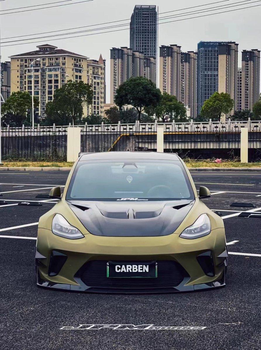 - Robot Craftsman "HACKER" Widebody Front Bumper & Front Splitter for Tesla Model 3 Performance/Base Carbon Fiber/FRP