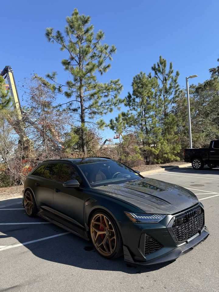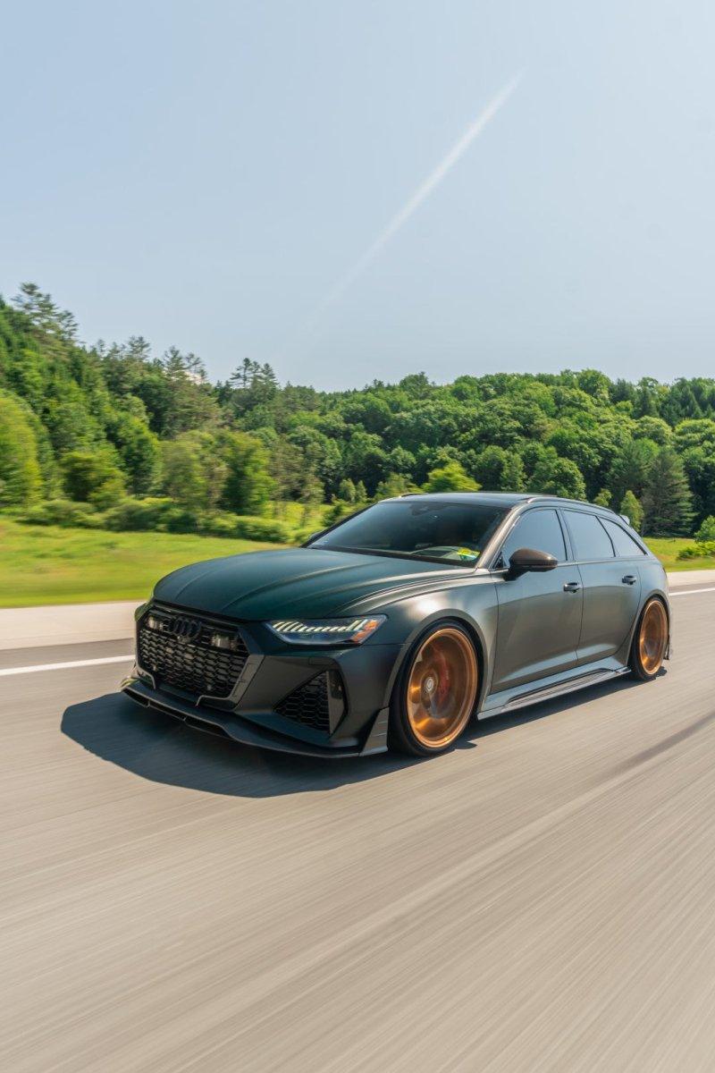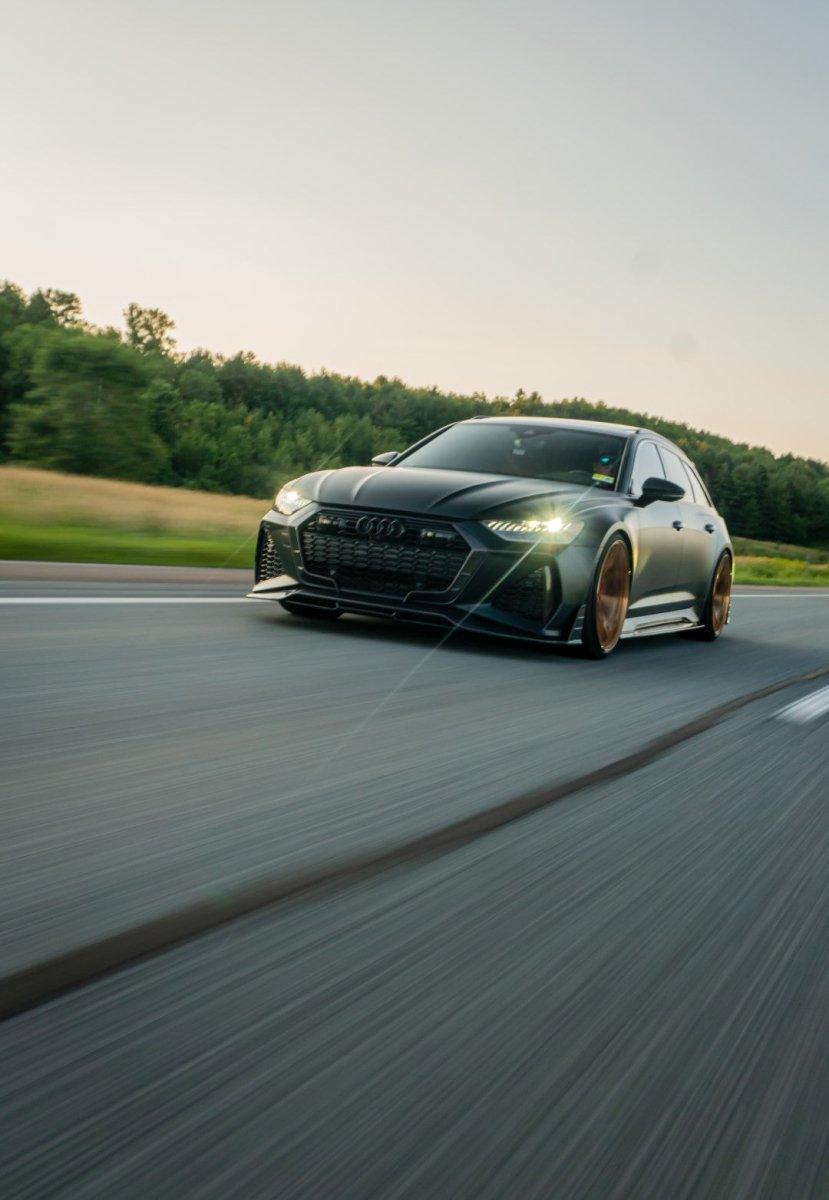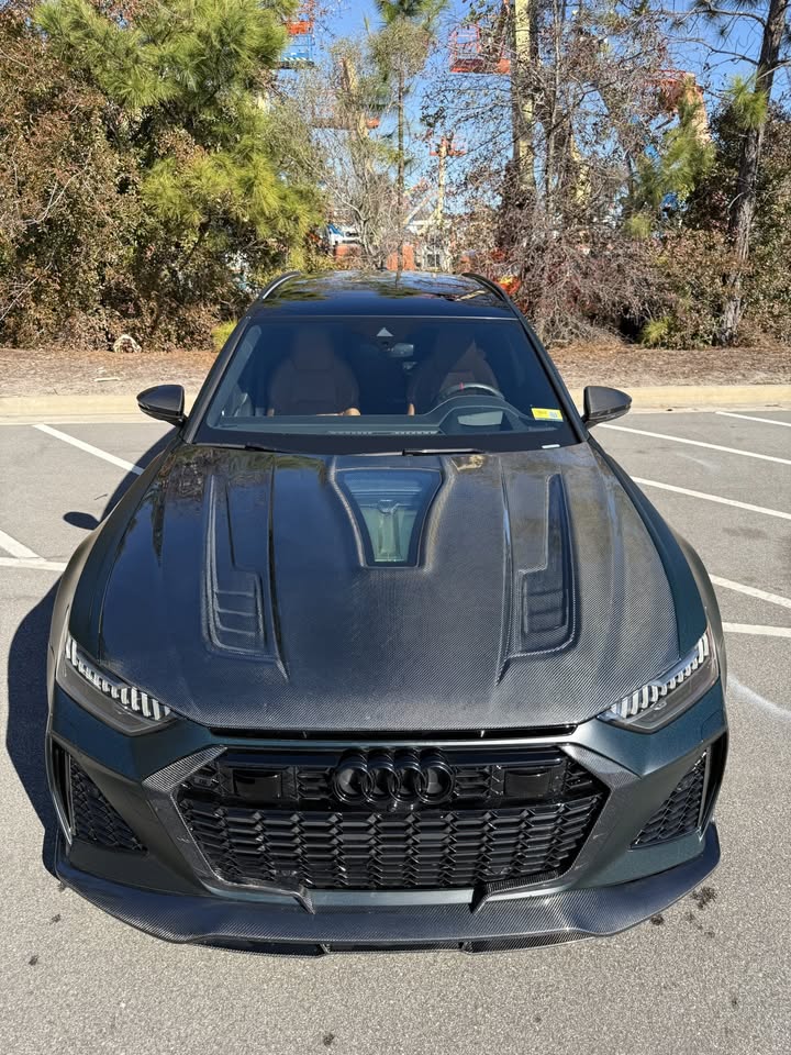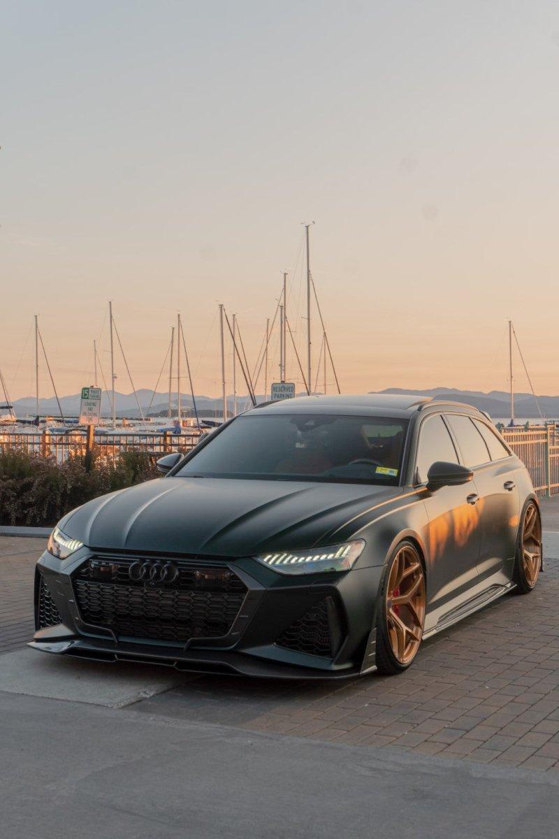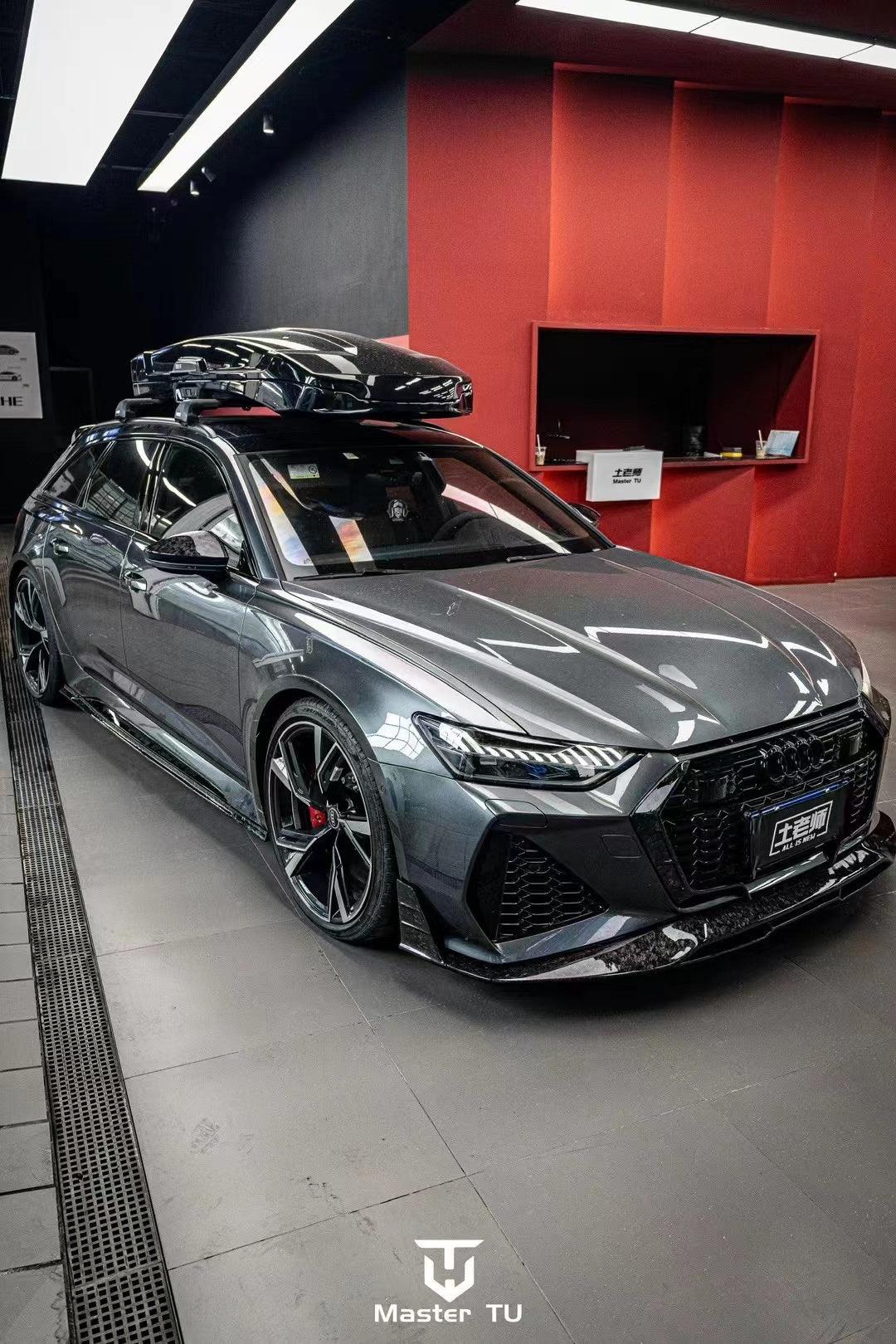 AUDI HAD CREATED A MEAN MACHINE WITH THE RS6 & RS7 . FOR THOSE WHO ARE LOOKING TO ONE UP THEIR GAME ON THE C8 , FUTURE DESIGN OFFERS AN AGGRESSIVE AND FUNCTIONAL AERO PACKAGE. LIGHT WEIGHT CARBON FIBER COMPOSITE IS THE IDEA MATERIAL FOR THIS APPLICATION.