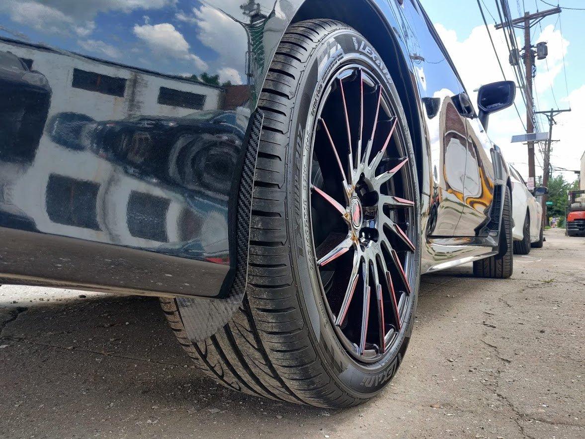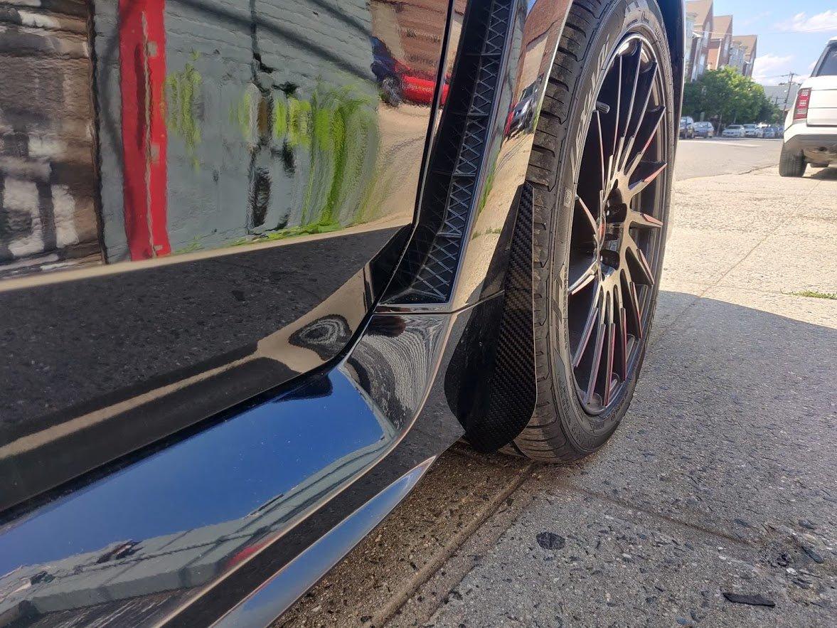 Carbon Fiber wheel arch guards are a quick and easy way to reduce the damage that stones and gravel can cause to your cars bodywork. The full carbon fiber arch guards are made from our mold and finished in a clear lacquer and hand polished.