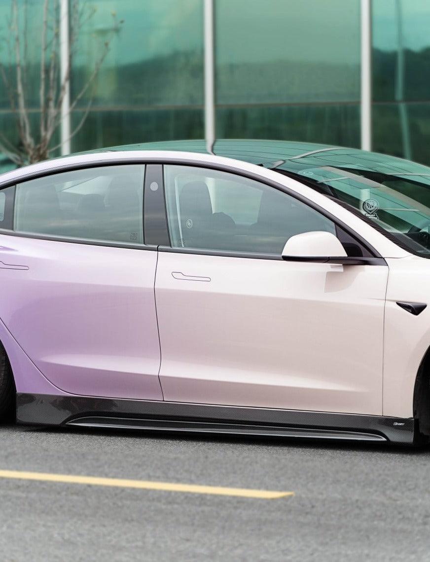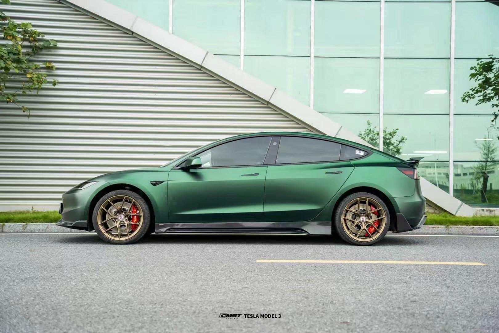 Upgrade Your Tesla Model 3 Highland / Performance 2024-ON with Aftermarket Parts - V1 Style Side Skirts Carbon Fiber from CMST Tuning