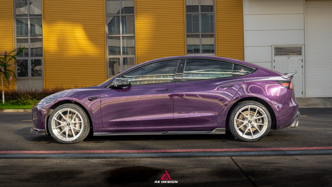 Upgrade Your Tesla Model 3 Highland / Performance 2024-ON with Aftermarket Parts - V2 Side Skirts Dry Pre-preg Carbon Fiber from ArmorExtend