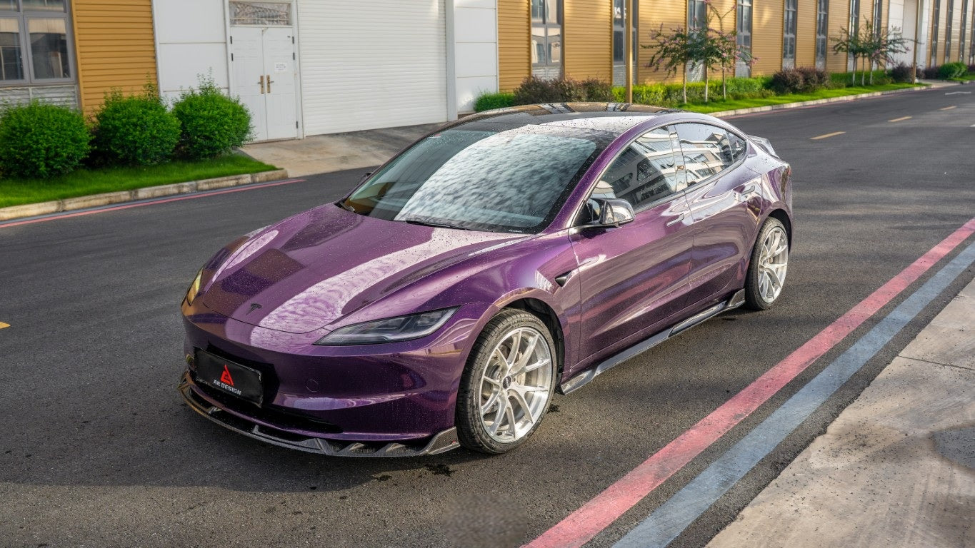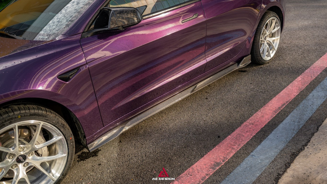 Upgrade Your Tesla Model 3 Highland / Performance 2024-ON with Aftermarket Parts - V2 Side Skirts Dry Pre-preg Carbon Fiber from ArmorExtend