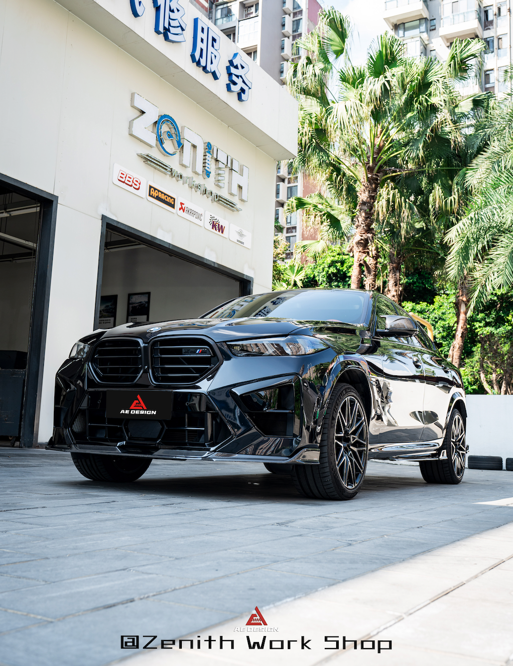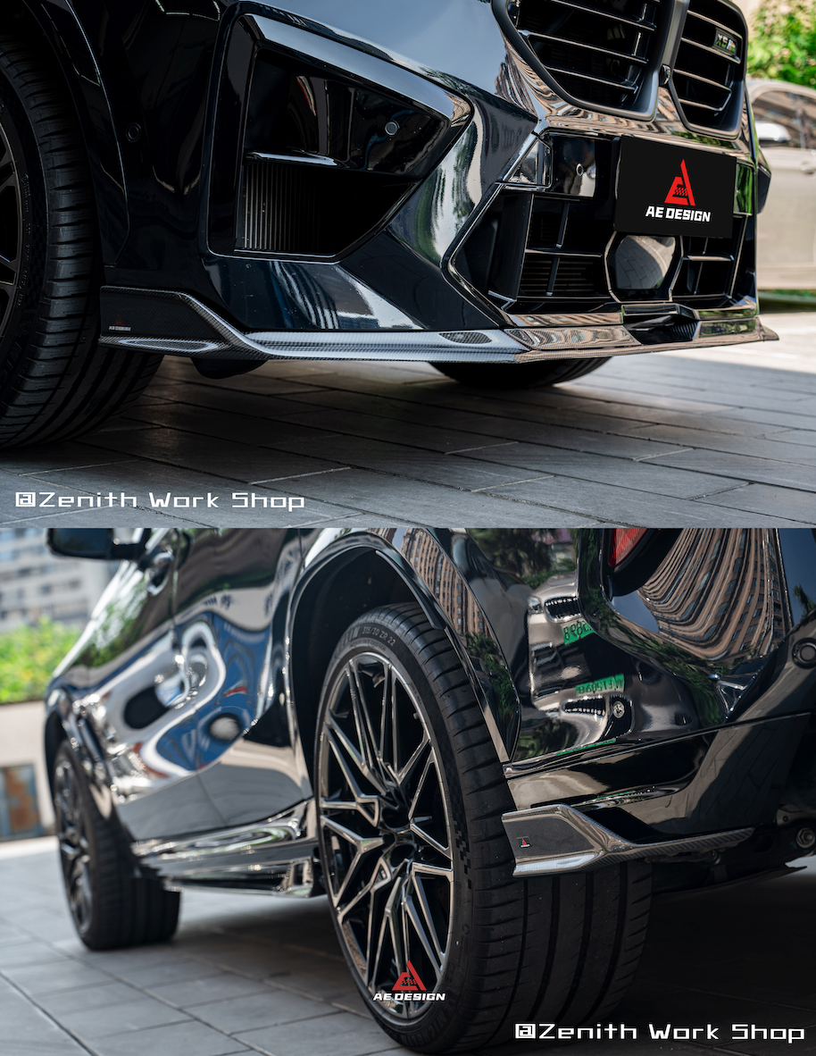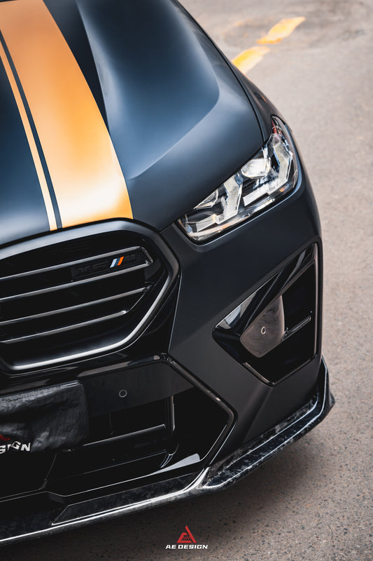 BMW X5M X5MC F95 & X6M X6MC F96 2024-ON (LCI) With Aftermarket Parts - AE Style Front Lip Carbon Fiber from ArmorExtend