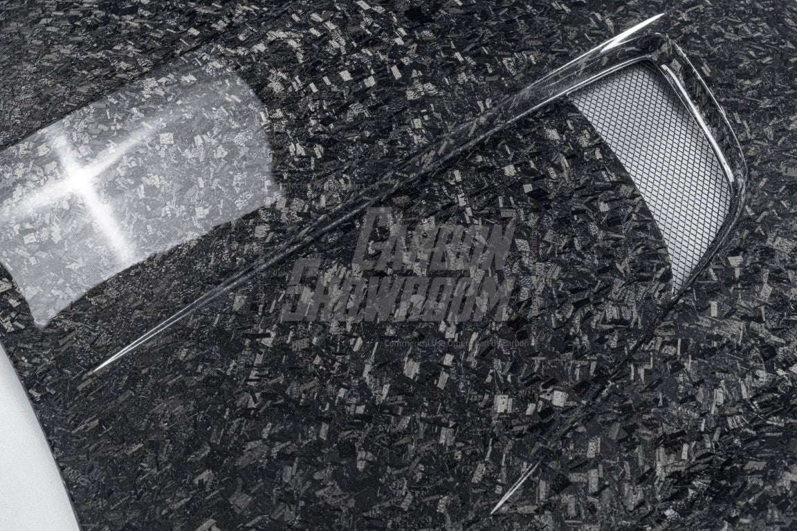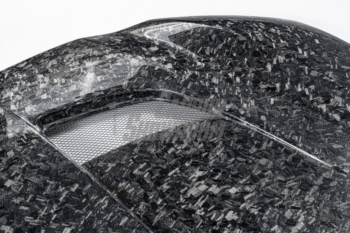 Forged (20% extra charge, made to order): Forged carbon fiber - a composite material made from randomly arranged, short carbon fiber strands combined with resin and compressed in a mold. Forged carbon fiber offers greater design flexibility compared to 3K woven carbon fiber, as it can be molded into more complex shapes without compromising structural integrity. Its random fiber orientation reduces weak points caused by the directional patterns in 3K weaves, enhancing impact resistance. Additionally, it has a unique aesthetic appeal, with a marbled texture that stands out from the uniform weave of 3K carbon fiber.