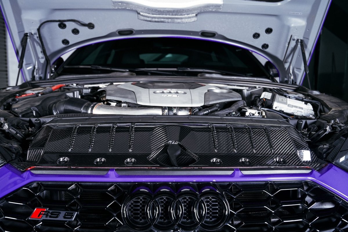 Upgrade Your Audi RS4 B9.5 2020 2021 2022 2023 2024 & RS5 B9.5 2020 2021 2022 2023 2024 2025 with Aftermarket Parts - Radiator Cooling Plate Pre-preg Carbon Fiber from Karbel Carbon