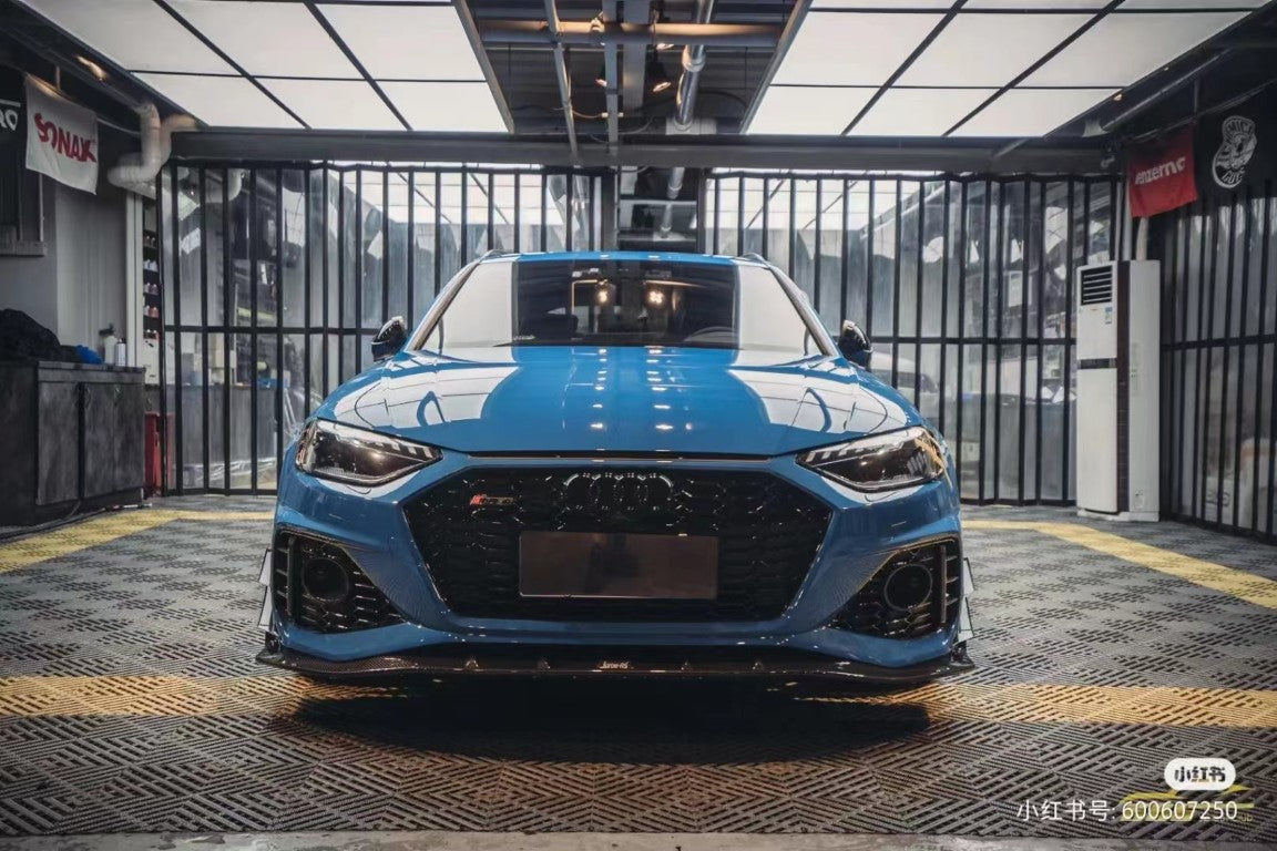 Upgrade Your Audi RS4 B9.5 2020 2021 2022 2023 2024 with Aftermarket Parts - Front Lip Pre-preg Carbon Fiber from Karbel Carbon