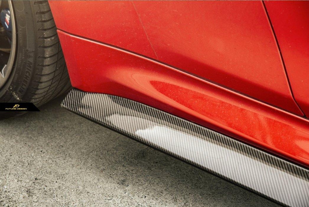 FRP is NOT Carbon Fiber and is a composite material of carbon polymers and fiberglass. Coming in a fresh sanded and primed finish, FRP is ready for paint or wrap! Carbon Fiber, depending on the brand and part, can be offered in Pre-Preg or Vacuum Carbon. Carbon Fiber is a woven pattern of carbon fibers, standard in a 3k weave.