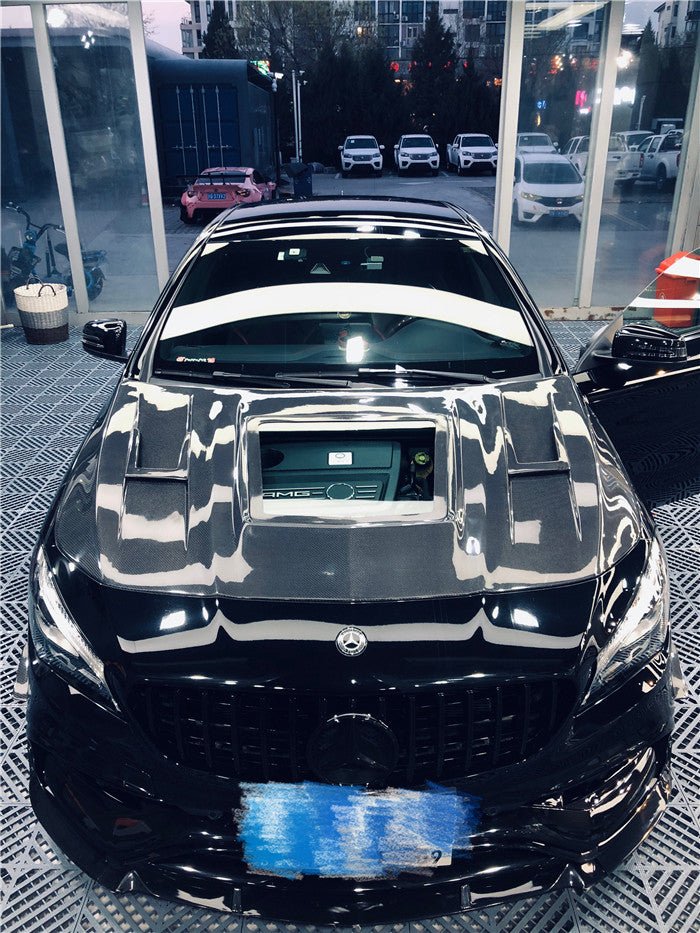 Aero Republic Tempered Glass Carbon Fiber Hood Bonnet Clearview for Mercedes benz C117 2014-2019 CLA-250 CLA-45 AMG