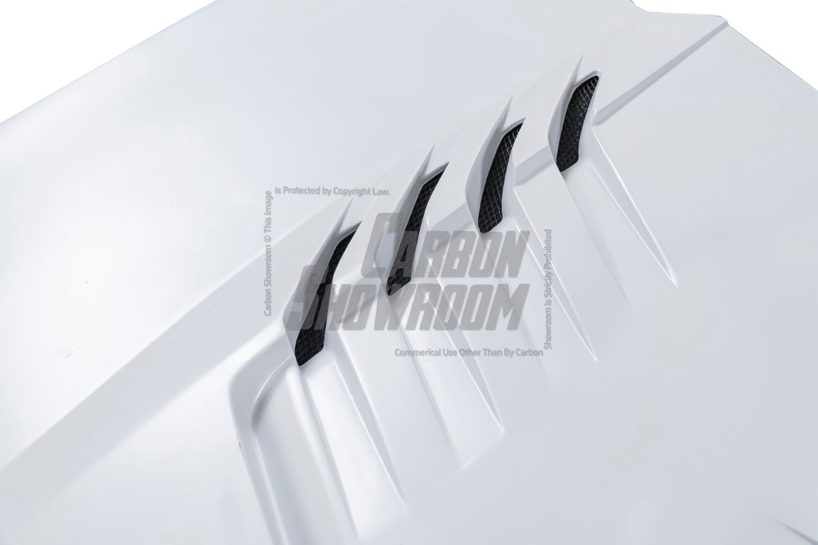 FRP is NOT Carbon Fiber and is a composite material of carbon polymers and fiberglass. Coming in a fresh sanded and primed finish, FRP is ready for paint or wrap! Carbon Fiber, depending on the brand and part, can be offered in Pre-Preg or Vacuum Carbon. Carbon Fiber is a woven pattern of carbon fibers, standard in a 3k weave.