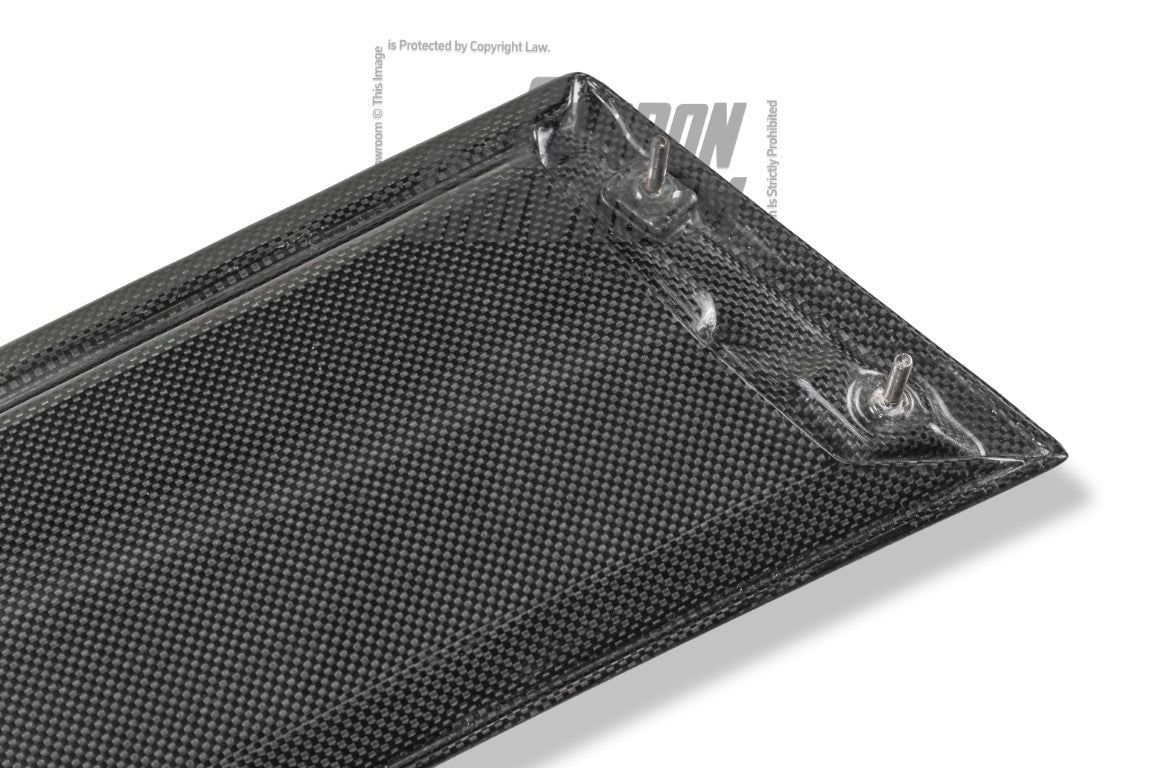 FRP is NOT Carbon Fiber and is a composite material of carbon polymers and fiberglass. Coming in a fresh sanded and primed finish, FRP is ready for paint or wrap! Carbon Fiber, depending on the brand and part, can be offered in Pre-Preg or Vacuum Carbon. Carbon Fiber is a woven pattern of carbon fibers, standard in a 3k weave.