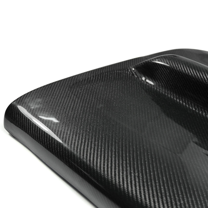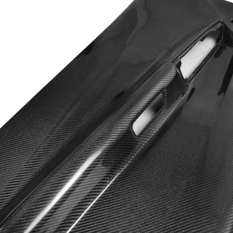 FRP is NOT Carbon Fiber and is a composite material of carbon polymers and fiberglass. Coming in a fresh sanded and primed finish, FRP is ready for paint or wrap! Carbon Fiber, depending on the brand and part, can be offered in Pre-Preg or Vacuum Carbon. Carbon Fiber is a woven pattern of carbon fibers, standard in a 3k weave.