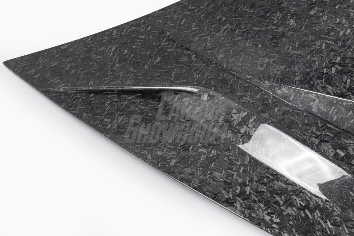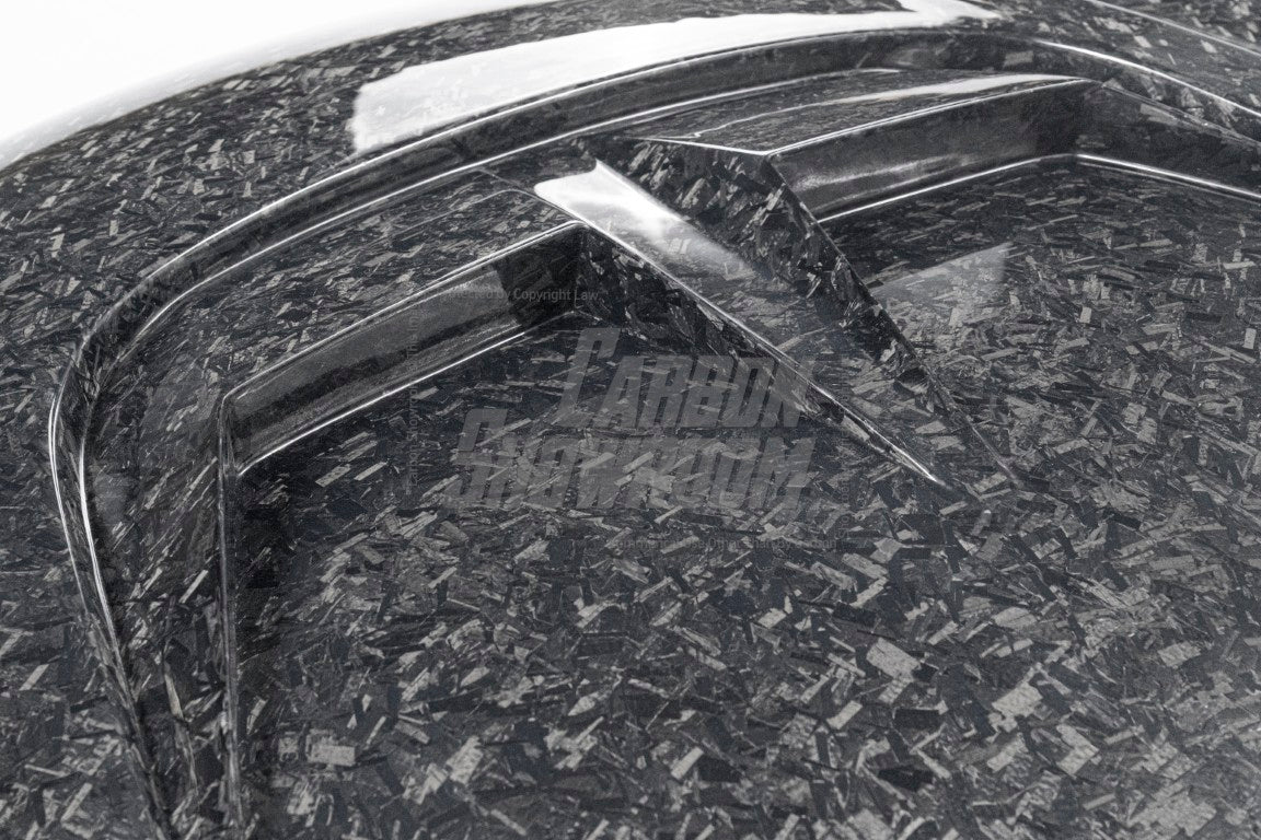 Forged (20% extra charge, made to order): Forged carbon fiber - a composite material made from randomly arranged, short carbon fiber strands combined with resin and compressed in a mold. Forged carbon fiber offers greater design flexibility compared to 3K woven carbon fiber, as it can be molded into more complex shapes without compromising structural integrity. Its random fiber orientation reduces weak points caused by the directional patterns in 3K weaves, enhancing impact resistance. Additionally, it has a unique aesthetic appeal, with a marbled texture that stands out from the uniform weave of 3K carbon fiber.