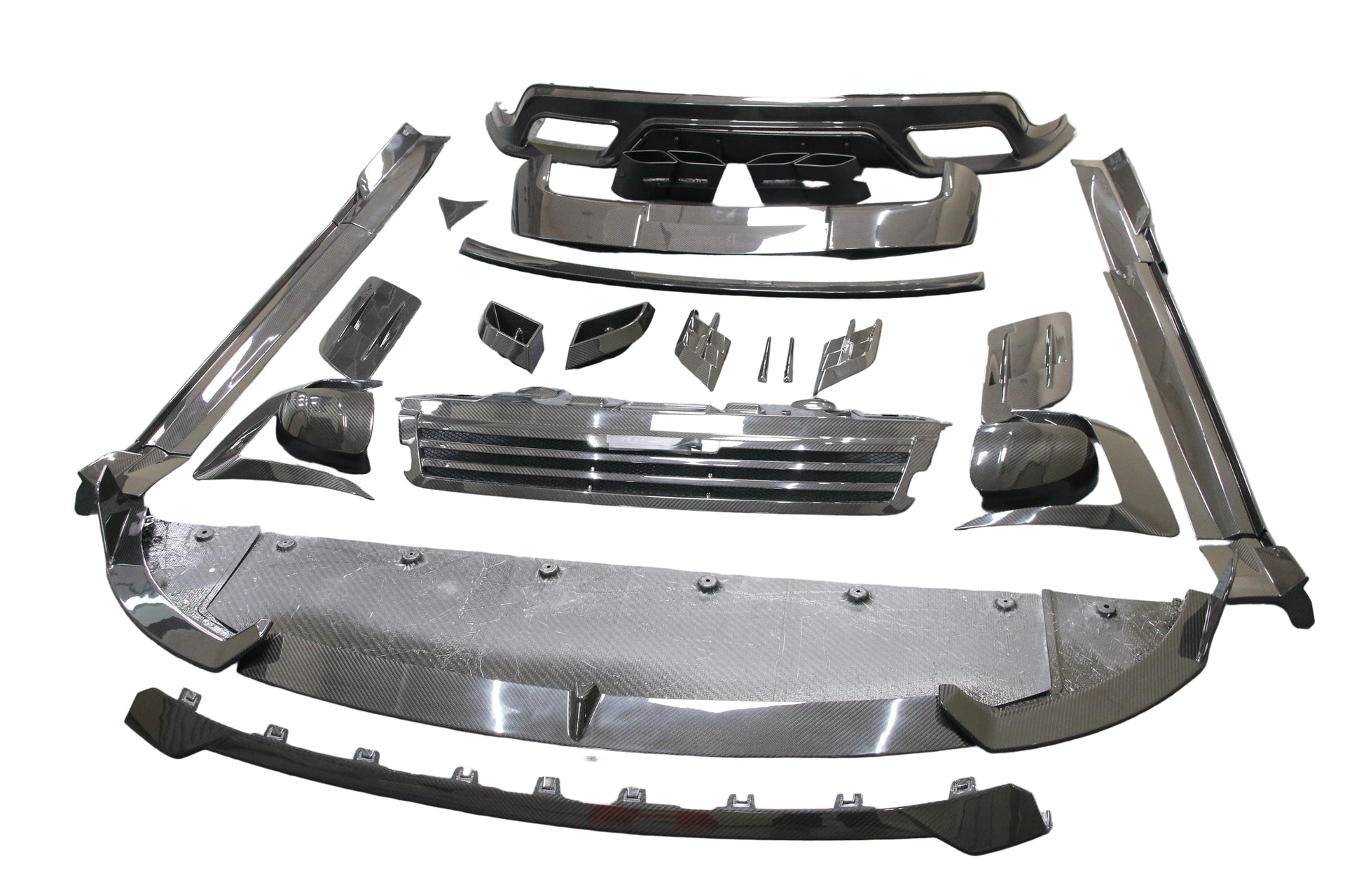 Package B: - (AR-X1-24RANGE-M-FL) Front Bumper Lip Splitter x1 Set (2 pcs) - (AR-X1-24RANGE-M-FG) Front Grill Mask x1 (1 pcs) - (AR-X1-24RANGE-M-SS) Side Skirts 6 Pieces Set x1 Set (6 pcs) - (AR-X1-24RANGE-M-MC) Mirror Caps Masks x1 Pair (2 pcs) - (AR-X1-24RANGE-M-RS) Rear Decklid Ducktail Lip Spoiler x1 (1 pcs) - (AR-X1-24RANGE-M-RRS) Rear Roof Spoiler 4 Piece Set x1 Set (4 pcs) - (AR-X1-24RANGE-M-RDNL) Rear Bumper Diffuser Without Light x1 (1 pcs) - (AR-X1-24RANGE-M-ET) Exhaust Tips x1 Pair (2 pcs) - (AR-X1-24RANGE-M-FSV) Front Bumper Side Vents Air Intakes Cover Trims x1 Pair (2 pcs) - (AR-X1-24RANGE-M-FLSV) Front Bumper Lower Splitter Vents Trims x1 Pair (2 pcs) - (AR-X1-24RANGE-M-HAI) Hood Bonnet Air Intake Trims x1 Pair (2 pcs) - (AR-X1-24RANGE-M-SPV) Side Panels Vents Trims x1 Pair (2 pcs) |