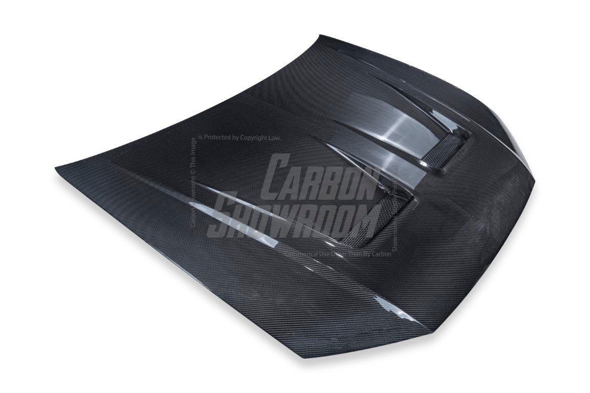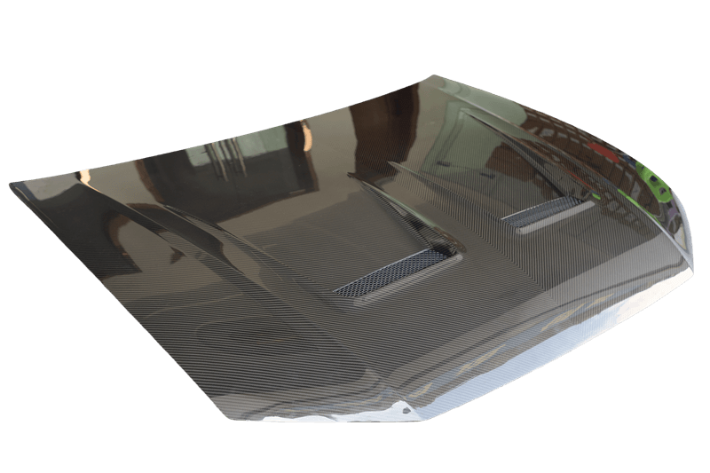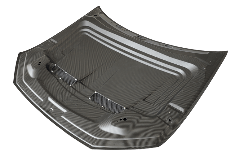 FRP is NOT Carbon Fiber and is a composite material of carbon polymers and fiberglass. Coming in a fresh sanded and primed finish, FRP is ready for paint or wrap! Carbon Fiber, depending on the brand and part, can be offered in Pre-Preg or Vacuum Carbon. Carbon Fiber is a woven pattern of carbon fibers, standard in a 3k weave.