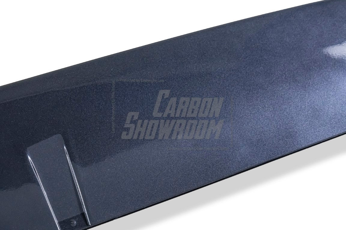 FRP is NOT Carbon Fiber and is a composite material of carbon polymers and fiberglass. Coming in a fresh sanded and primed finish, FRP is ready for paint or wrap! Carbon Fiber, depending on the brand and part, can be offered in Pre-Preg or Vacuum Carbon. Carbon Fiber is a woven pattern of carbon fibers, standard in a 3k weave.