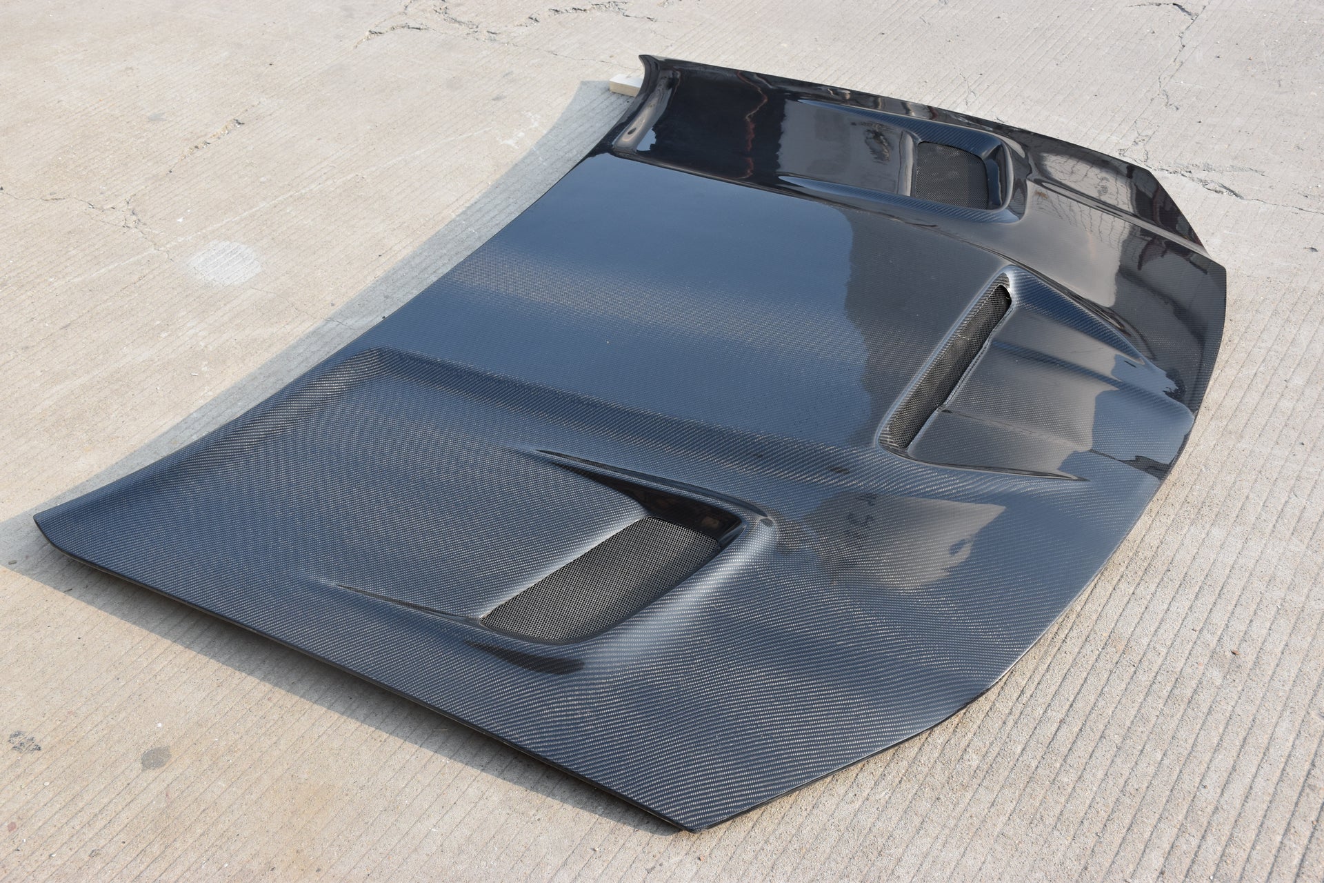 FRP is NOT Carbon Fiber and is a composite material of carbon polymers and fiberglass. Coming in a fresh sanded and primed finish, FRP is ready for paint or wrap! Carbon Fiber, depending on the brand and part, can be offered in Pre-Preg or Vacuum Carbon. Carbon Fiber is a woven pattern of carbon fibers, standard in a 3k weave.