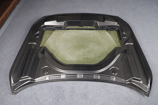 FRP is NOT Carbon Fiber and is a composite material of carbon polymers and fiberglass. Coming in a fresh sanded and primed finish, FRP is ready for paint or wrap! Carbon Fiber, depending on the brand and part, can be offered in Pre-Preg or Vacuum Carbon. Carbon Fiber is a woven pattern of carbon fibers, standard in a 3k weave.
