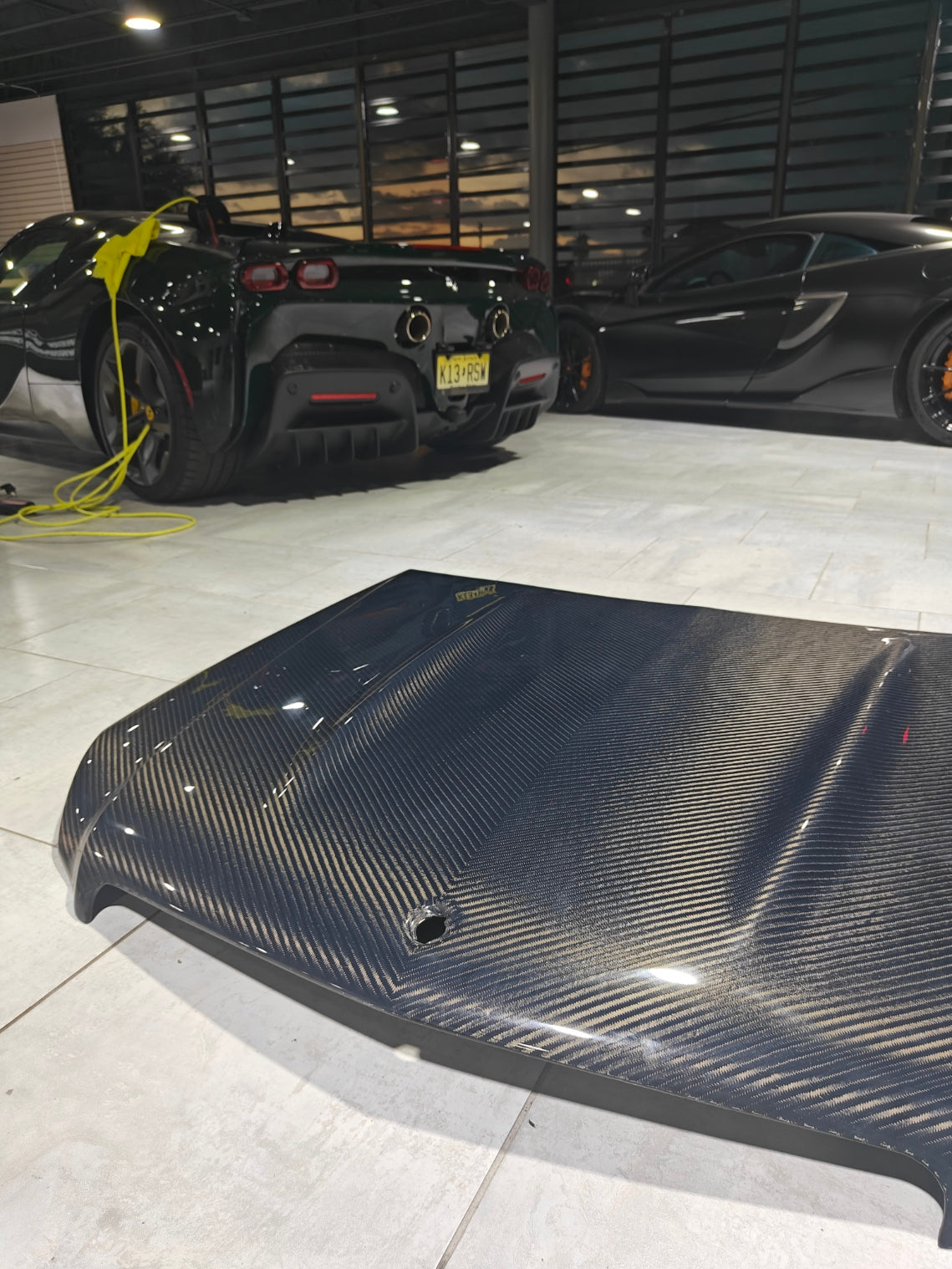 FRP is NOT Carbon Fiber and is a composite material of carbon polymers and fiberglass. Coming in a fresh sanded and primed finish, FRP is ready for paint or wrap! Carbon Fiber, depending on the brand and part, can be offered in Pre-Preg or Vacuum Carbon. Carbon Fiber is a woven pattern of carbon fibers, standard in a 3k weave.