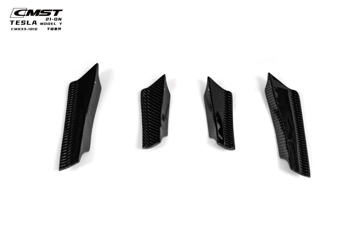 Tesla Model Y Performance AWD Long Range RWD Standard 2020-ON (Designed to be compatible with CMST V2 Front Bumper only.) with Aftermarket Parts - Front Bumper Canards Carbon Fiber / FRP from CMST Tuning