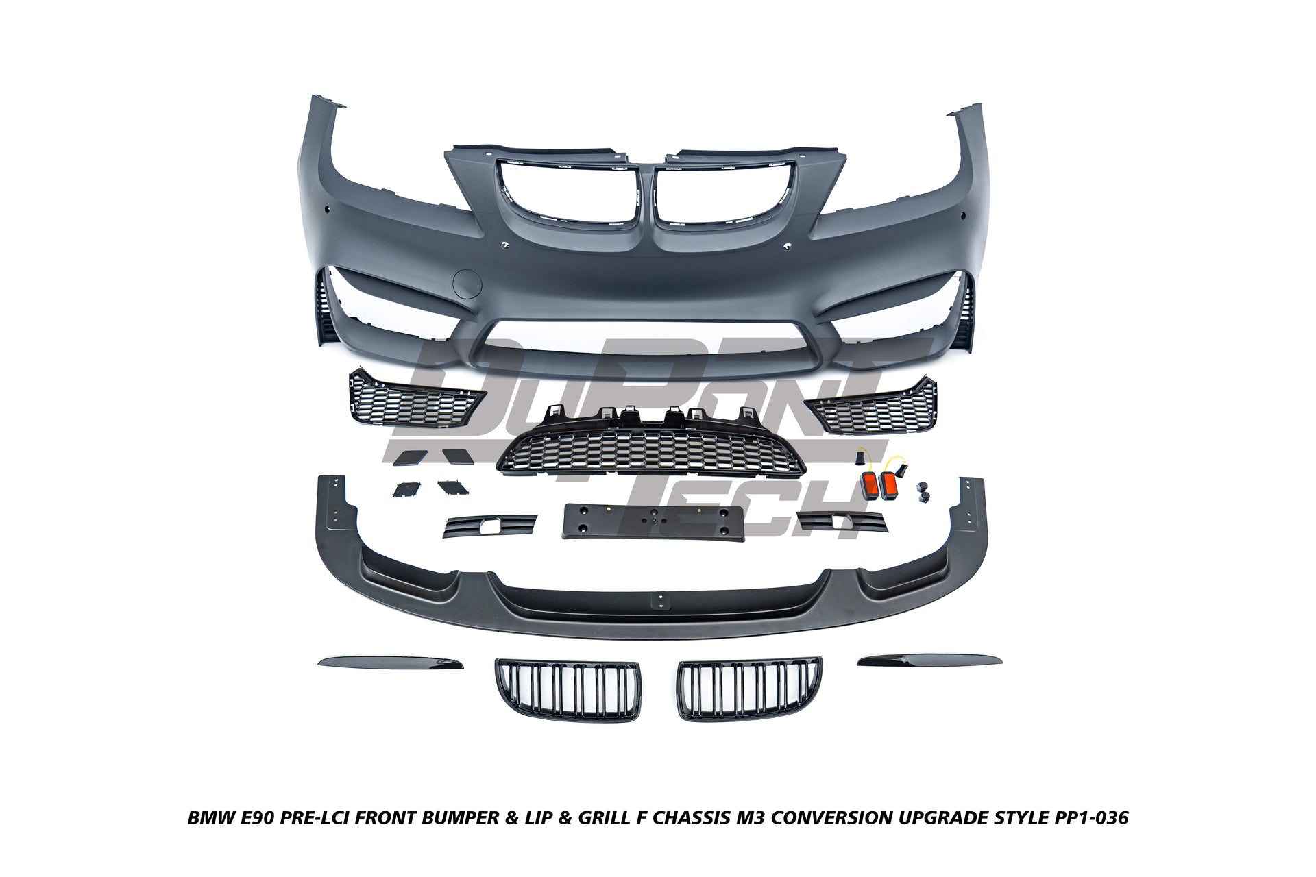 DuPont Tech F Chassis M3 Conversion Upgrade Style Front Bumper & Lip & Grill for BMW 3 Series E90 Pre-LCI 2006-2008 PP Polypropylene/ABS