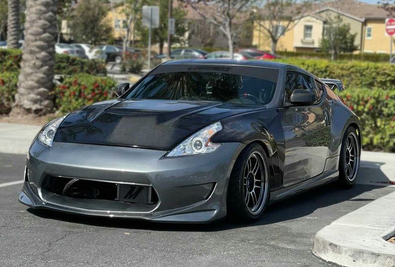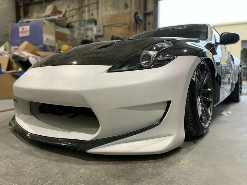 Nissan 370Z Sport Touring Base Fairlady Z Z34 Pre-Facelift 2009 2010 2011 & 370Z Sport Touring Base Fairlady Z Z34 Facelift 2012 2013 2014 2015 2016 2017 2018 2019 2020 & Nismo V1 2009 2010 2011 & Nismo V2 2012 2013 2014 2015 2016 2017 2018 2019 2020 with Aftermarket Parts - AM STYLE Front Bumper Carbon Fiber / FRP from EPR USA