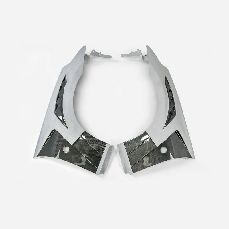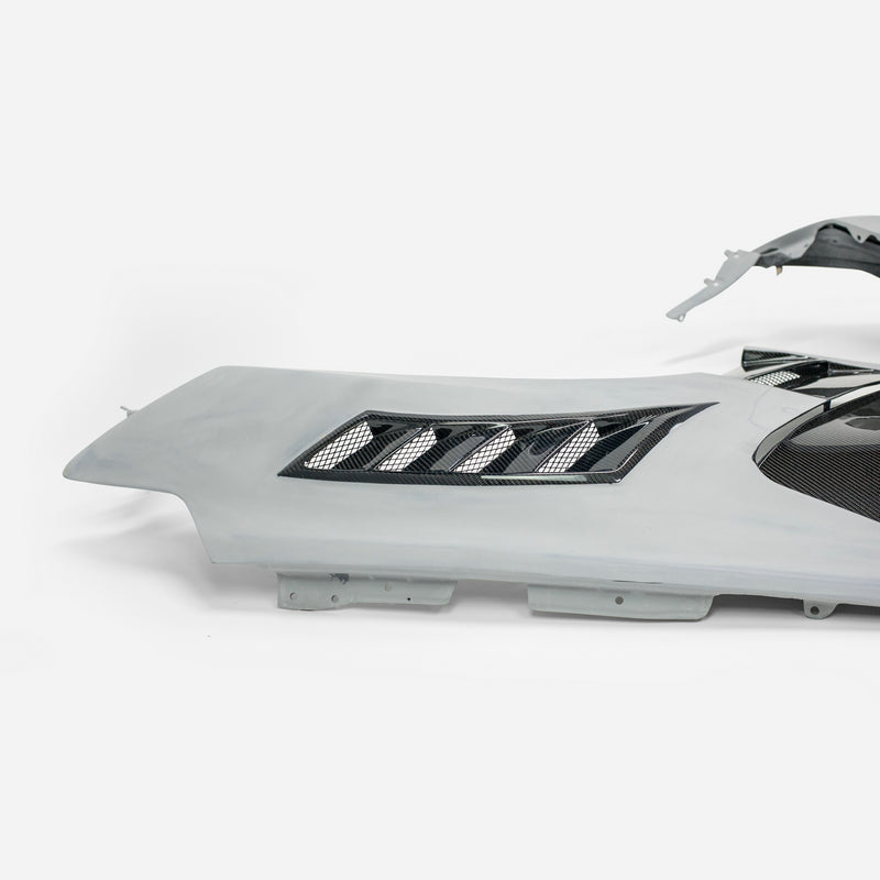 Partial Vacuumed Carbon: - Partial Vacuumed Carbon Fiber with UV Protection Clearcoat: Combination of FRP and Carbon Fiber, FRP (Fiber Glass) is a composite material comprised of carbon fiber reinforced polymers. FRP Part comes with primed finish ready to be sanded and painted. |