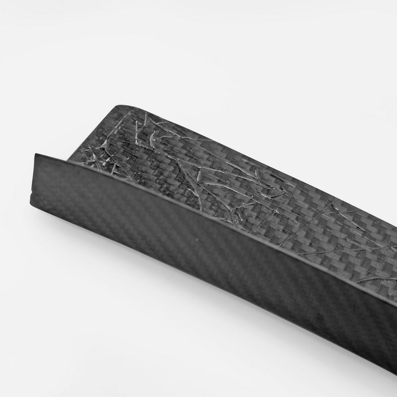 -Vacuum Carbon Fiber, also known as Wet Carbon, is placed into its mold with resin and vacuum sealed into its form. Both have the same finish but have different structural formulas.