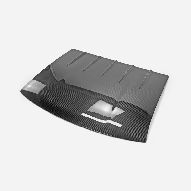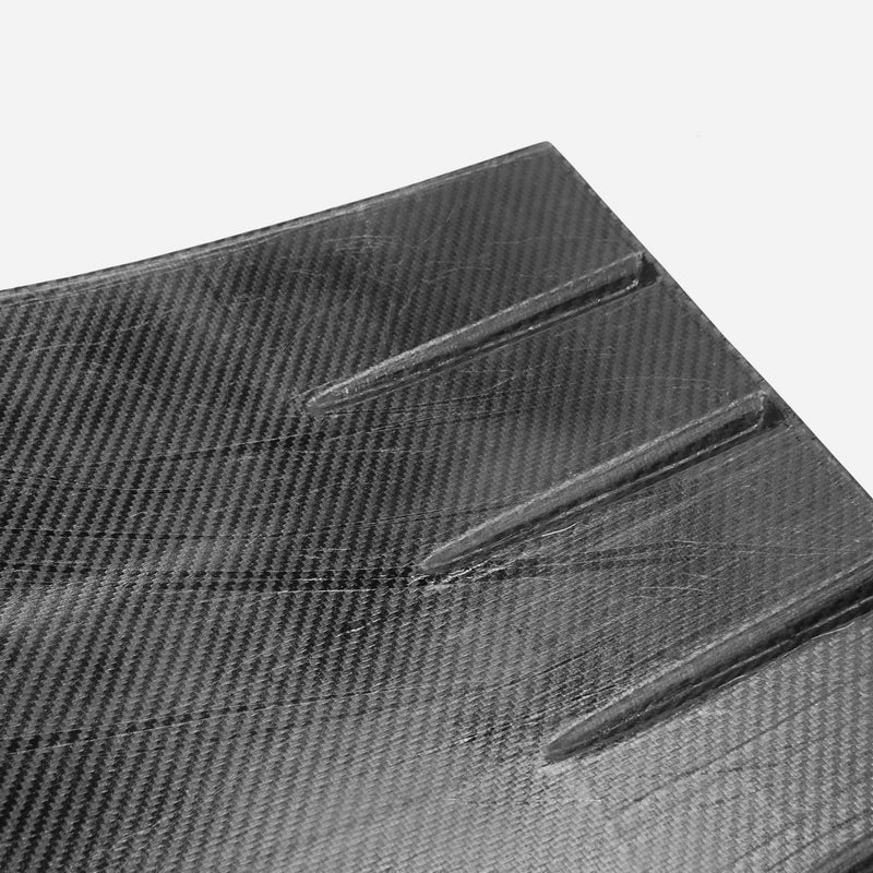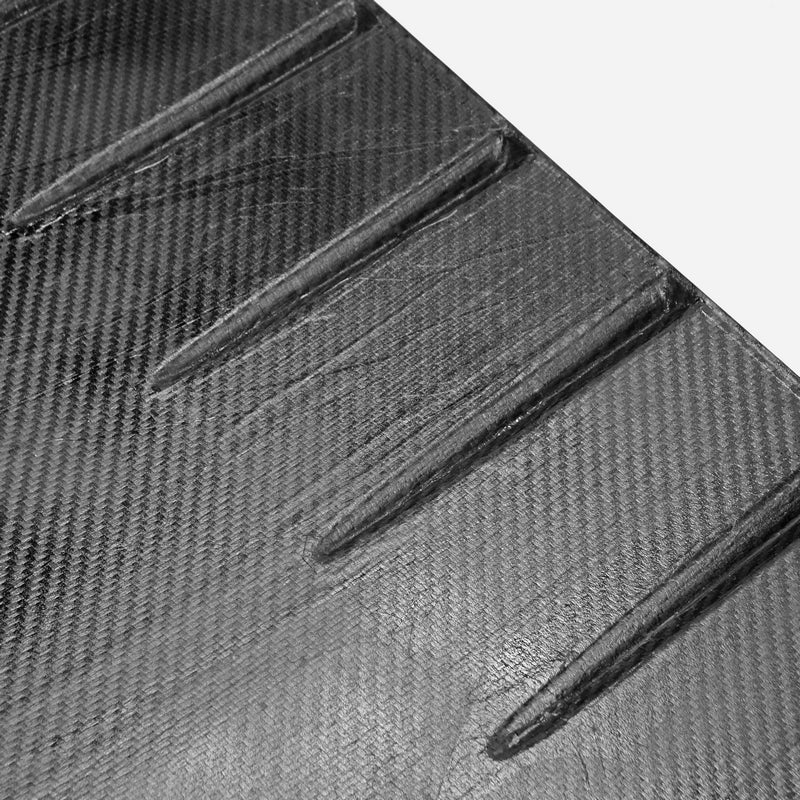 FRP is NOT Carbon Fiber and is a composite material of carbon polymers and fiberglass. Coming in a fresh sanded and primed finish, FRP is ready for paint or wrap! Carbon Fiber, depending on the brand and part, can be offered in Pre-Preg or Vacuum Carbon. Carbon Fiber is a woven pattern of carbon fibers, standard in a 3k weave.