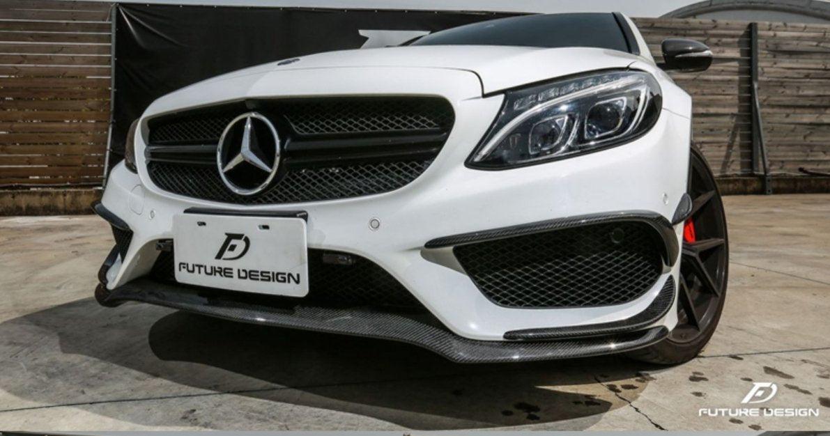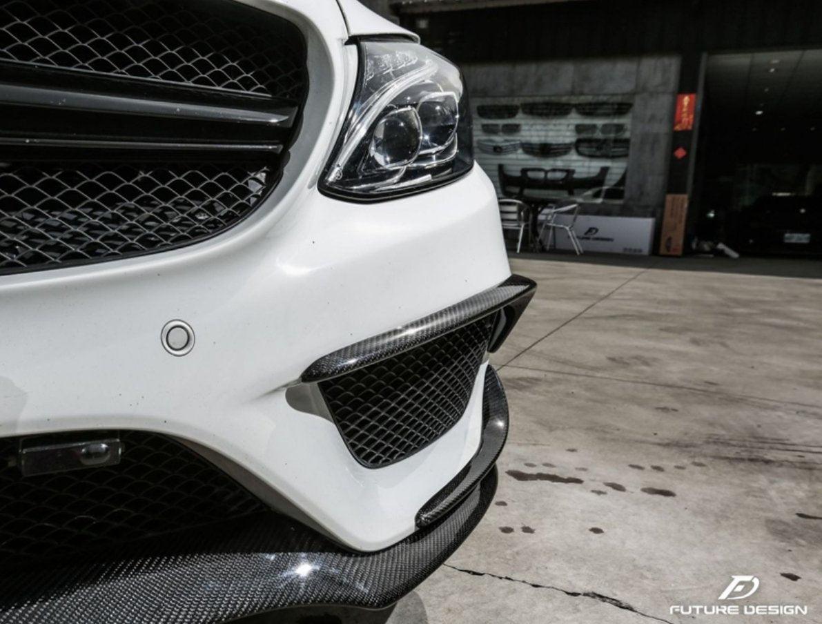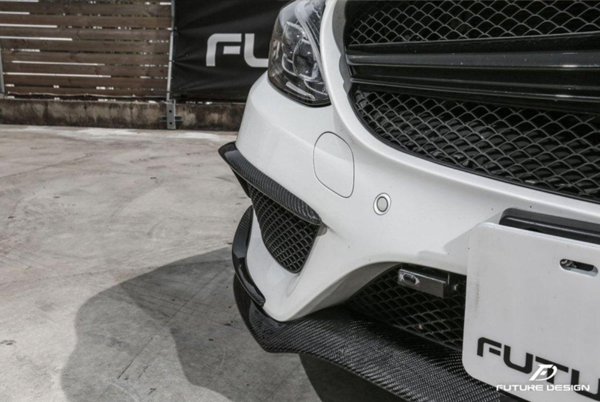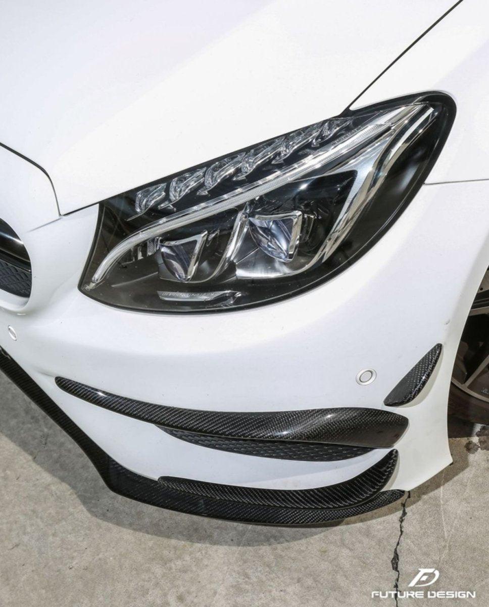 - Future Design Carbon Fiber Front Canards (6Pcs) for W205 c300 AMG Sport Package Sedan / Coupe 2015-2018
