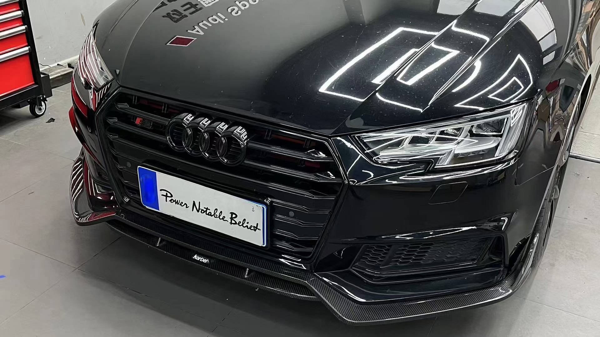 Upgrade Your Audi S4 A4 S-line (with s-line bumper, does not fit base model) B9 2017 2018 with Aftermarket Parts - Front Lip Pre-preg Carbon Fiber from Karbel Carbon