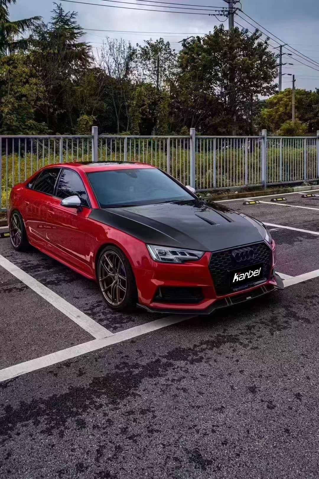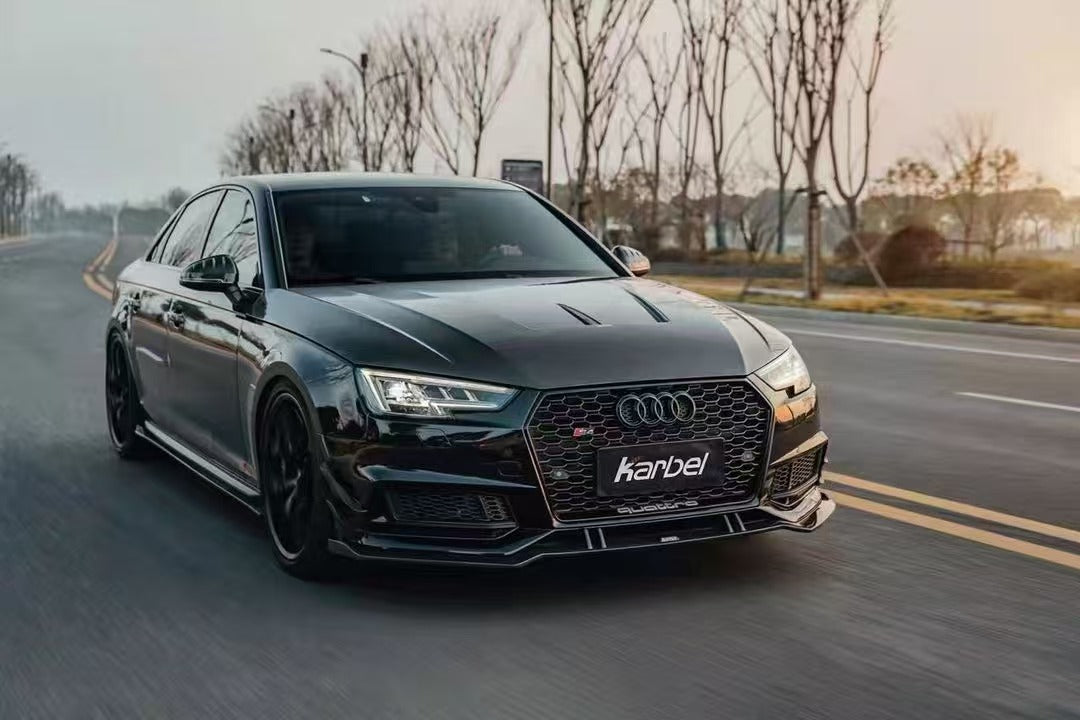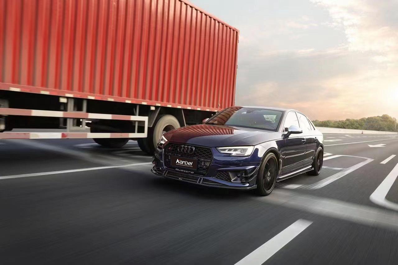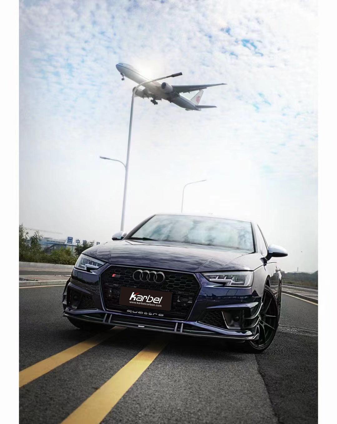 - Karbel Carbon Front Lip Ver.2 for Audi S4 & A4 S Line 2017-2018 B9 Pre-preg Carbon Fiber