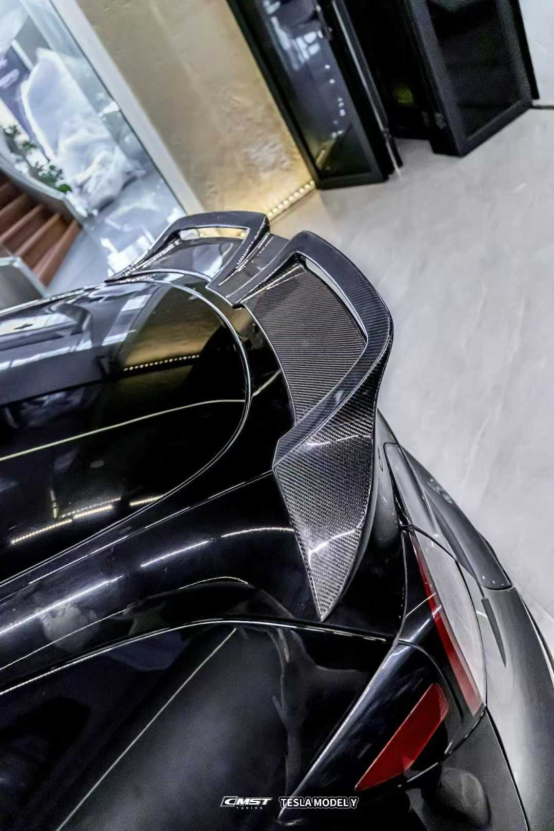 Tesla Model Y Performance AWD Long Range RWD Standard 2020-ON with Aftermarket Parts - V3 Style Rear Trunk Spoiler Carbon Fiber / FRP from CMST Tuning