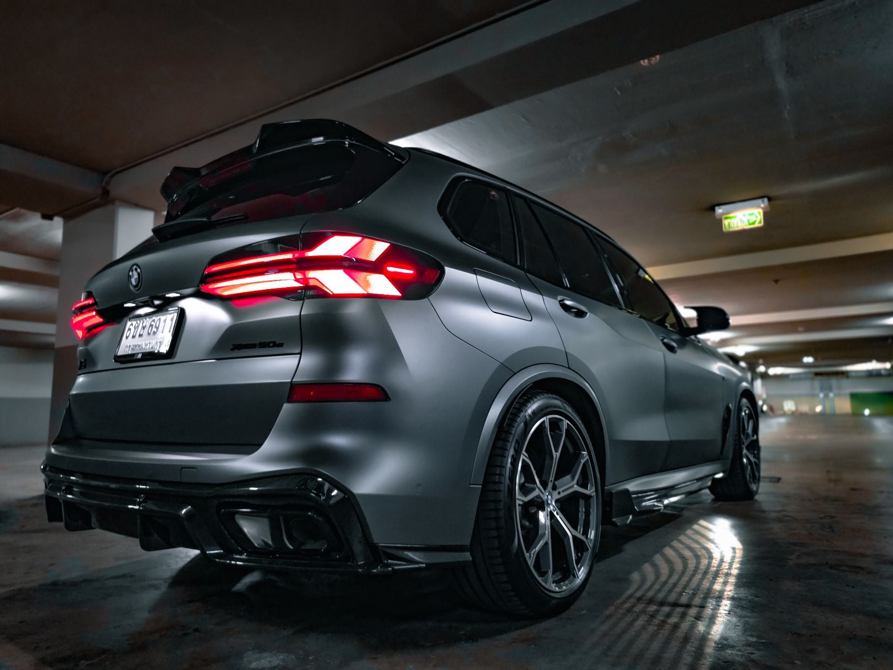 BMW X5 M60i M50i & s/x Drive 40i (With M-Package, does not fit base model) G05 (Fits Both Pre-LCI & LCI) 2019-ON with Aftermarket Parts - V2 Pre preg Carbon Fiber Rear Diffuser & Canards from Karbel Carbon