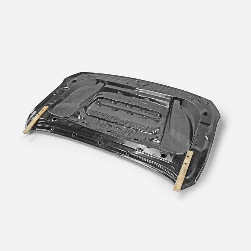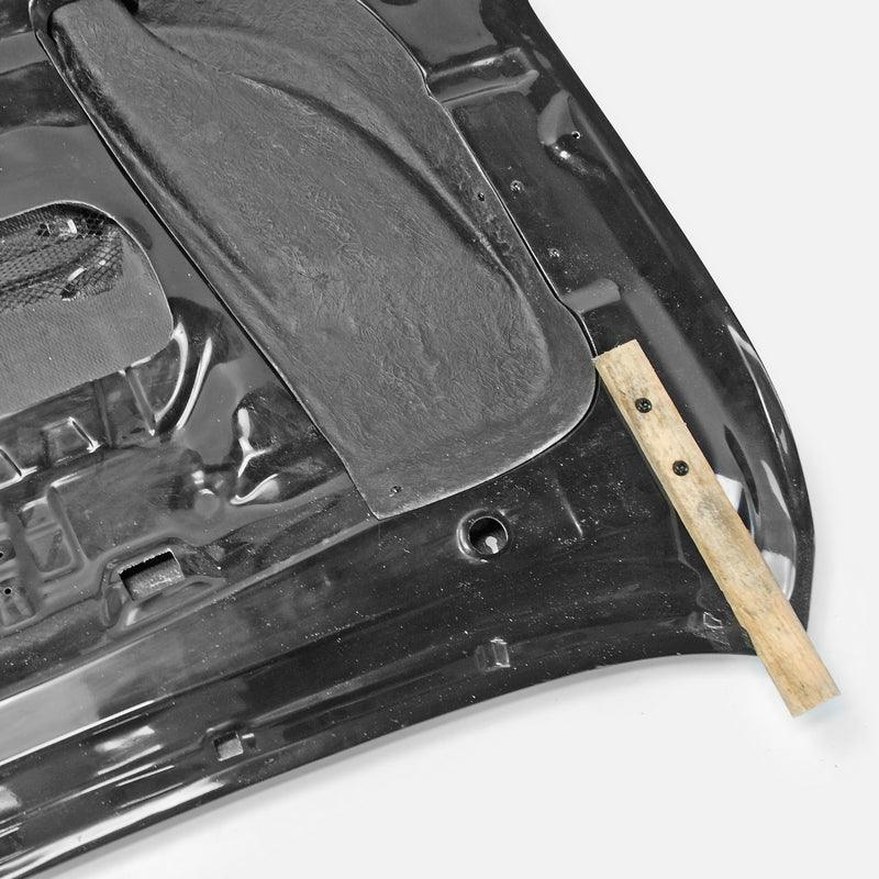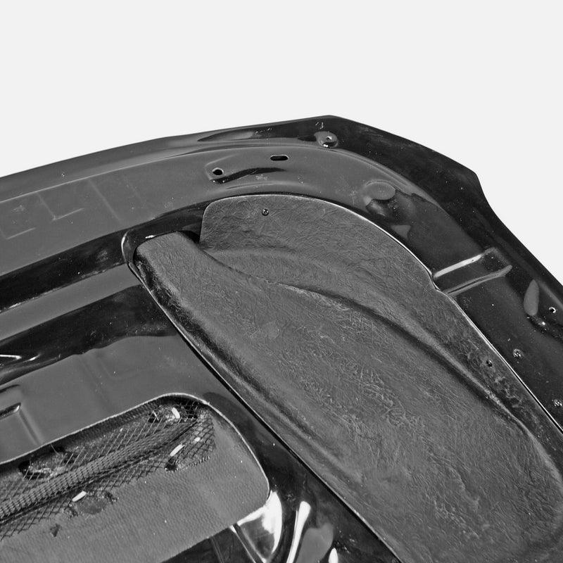 FRP is NOT Carbon Fiber and is a composite material of carbon polymers and fiberglass. Coming in a fresh sanded and primed finish, FRP is ready for paint or wrap! Carbon Fiber, depending on the brand and part, can be offered in Pre-Preg or Vacuum Carbon. Carbon Fiber is a woven pattern of carbon fibers, standard in a 3k weave.