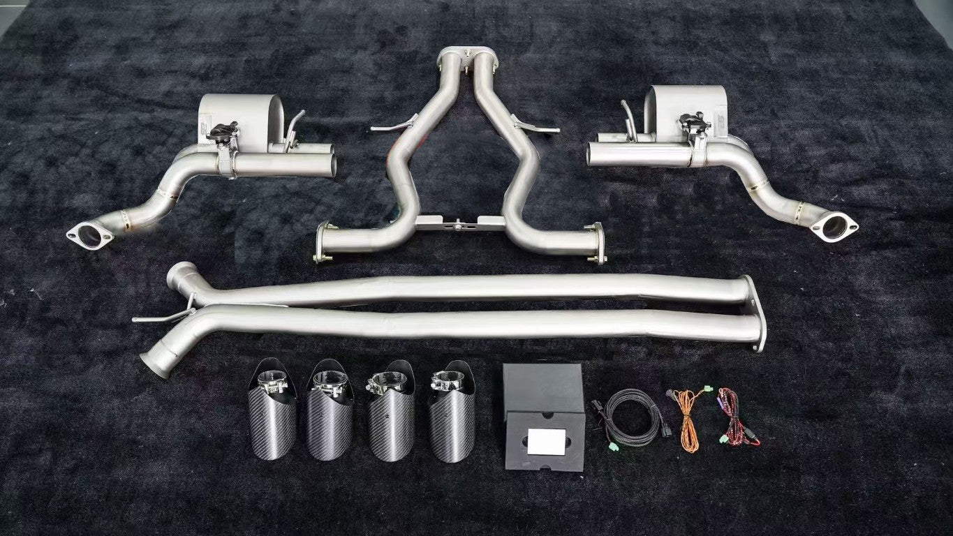 Upgrade Your Porsche Panamera 976 E-Hybird 2024-ON with Aftermarket Parts - Catback Exhaust Quad Exit Tips with Valve Stainless Steel / Titanium from ArmorExtend