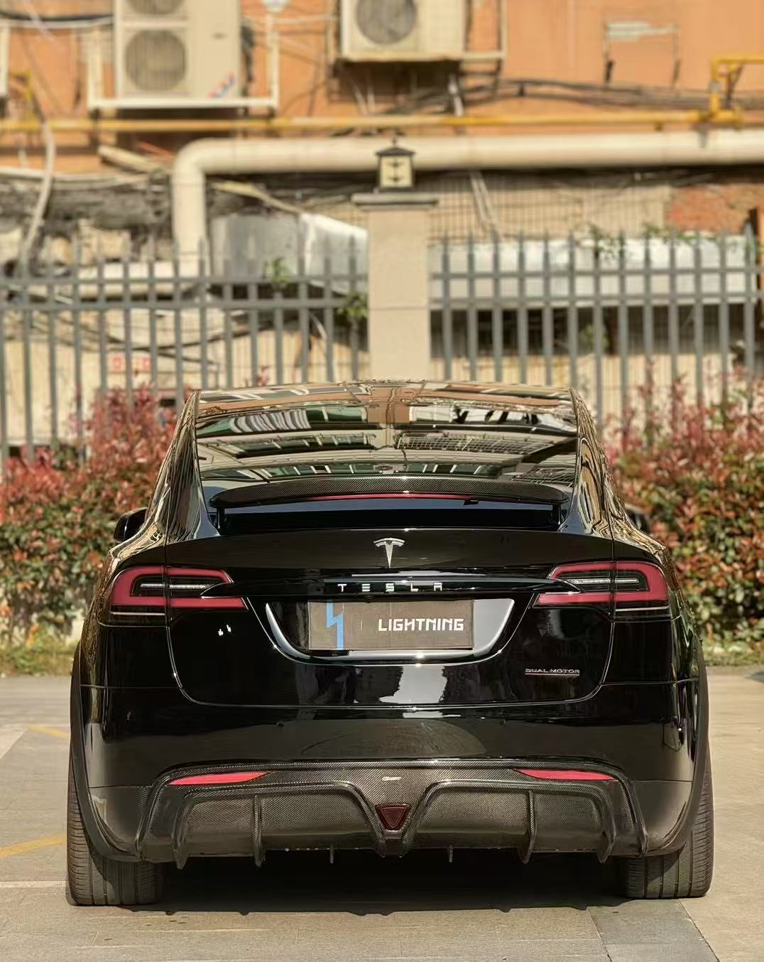 Tesla Model X P100D 100D 90D 75D 60D Performance Long Range Base 2016 2017 2018 2019 2020 2021 with Aftermarket Parts - Rear Diffuser Carbon Fiber / FRP from CMST Tuning