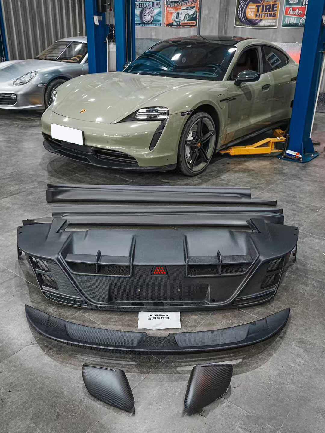 Upgrade Your Porsche Taycan 9J1 Sedan/Cross Turismo RWD/4S/GTS/Turbo/Turbo S 2020-ON with Aftermarket Parts - Rear Diffuser & Canards Carbon Fiber / FRP from CMST Tuning