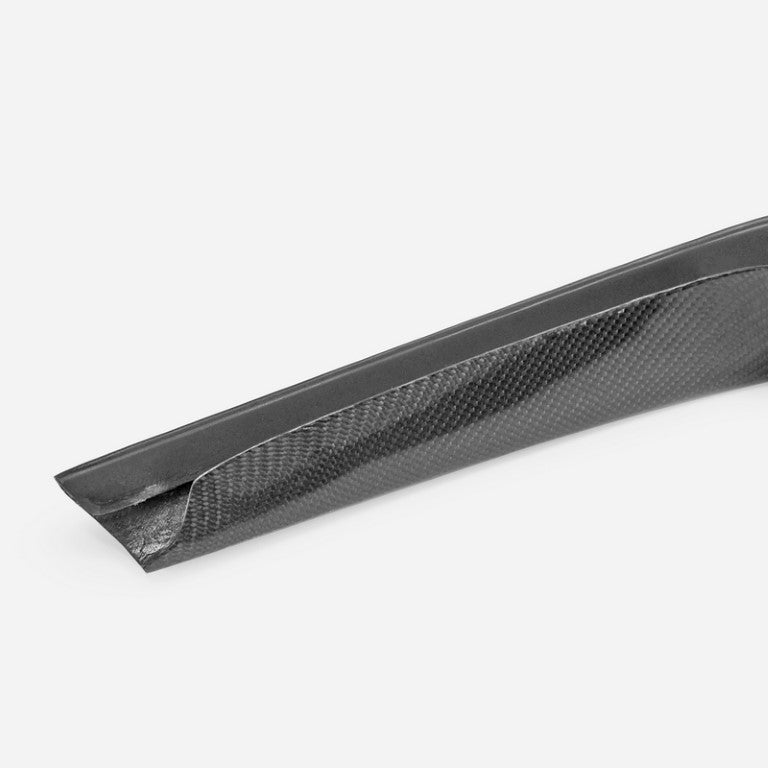 FRP is NOT Carbon Fiber and is a composite material of carbon polymers and fiberglass. Coming in a fresh sanded and primed finish, FRP is ready for paint or wrap! Carbon Fiber, depending on the brand and part, can be offered in Pre-Preg or Vacuum Carbon. Carbon Fiber is a woven pattern of carbon fibers, standard in a 3k weave.