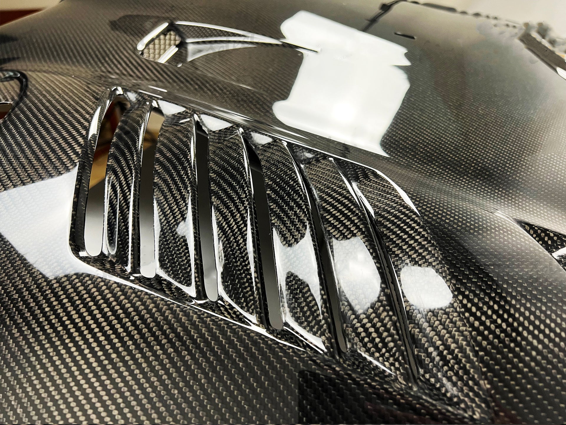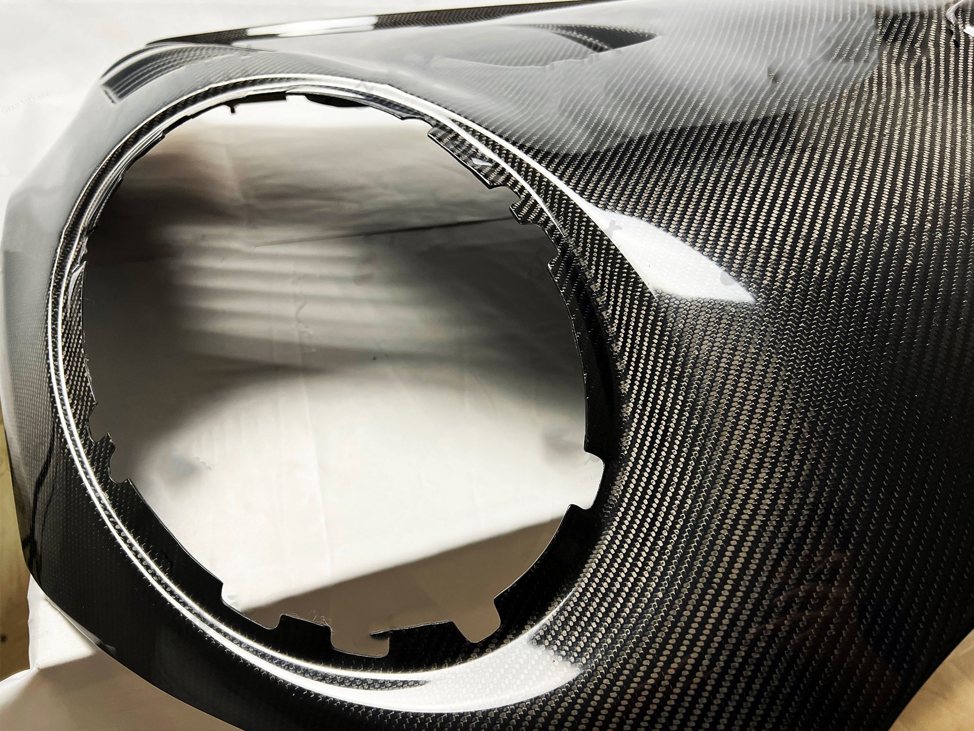 -Vacuum Carbon Fiber, also known as Wet Carbon, is placed into its mold with resin and vacuum sealed into its form. Both have the same finish but have different structural formulas.