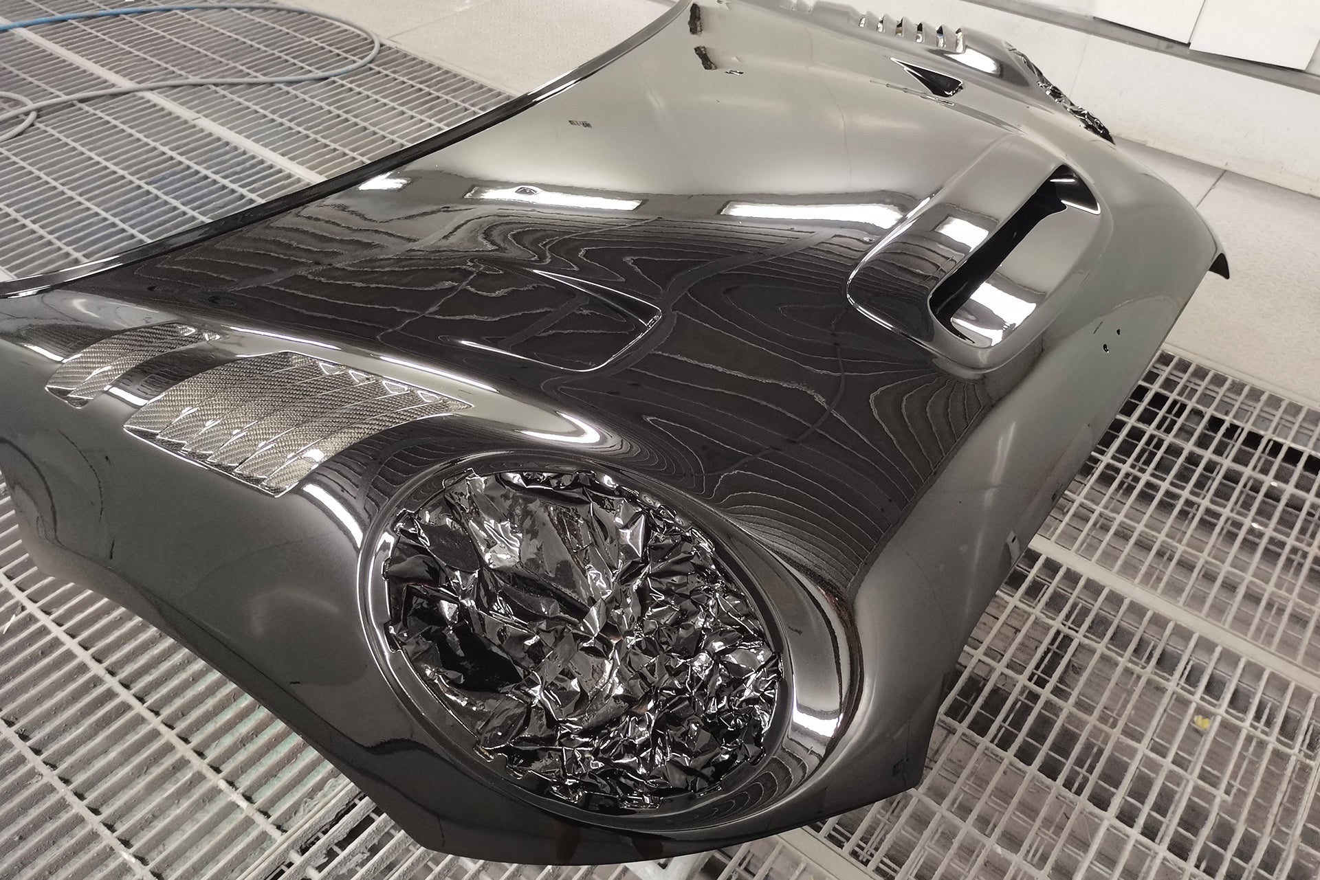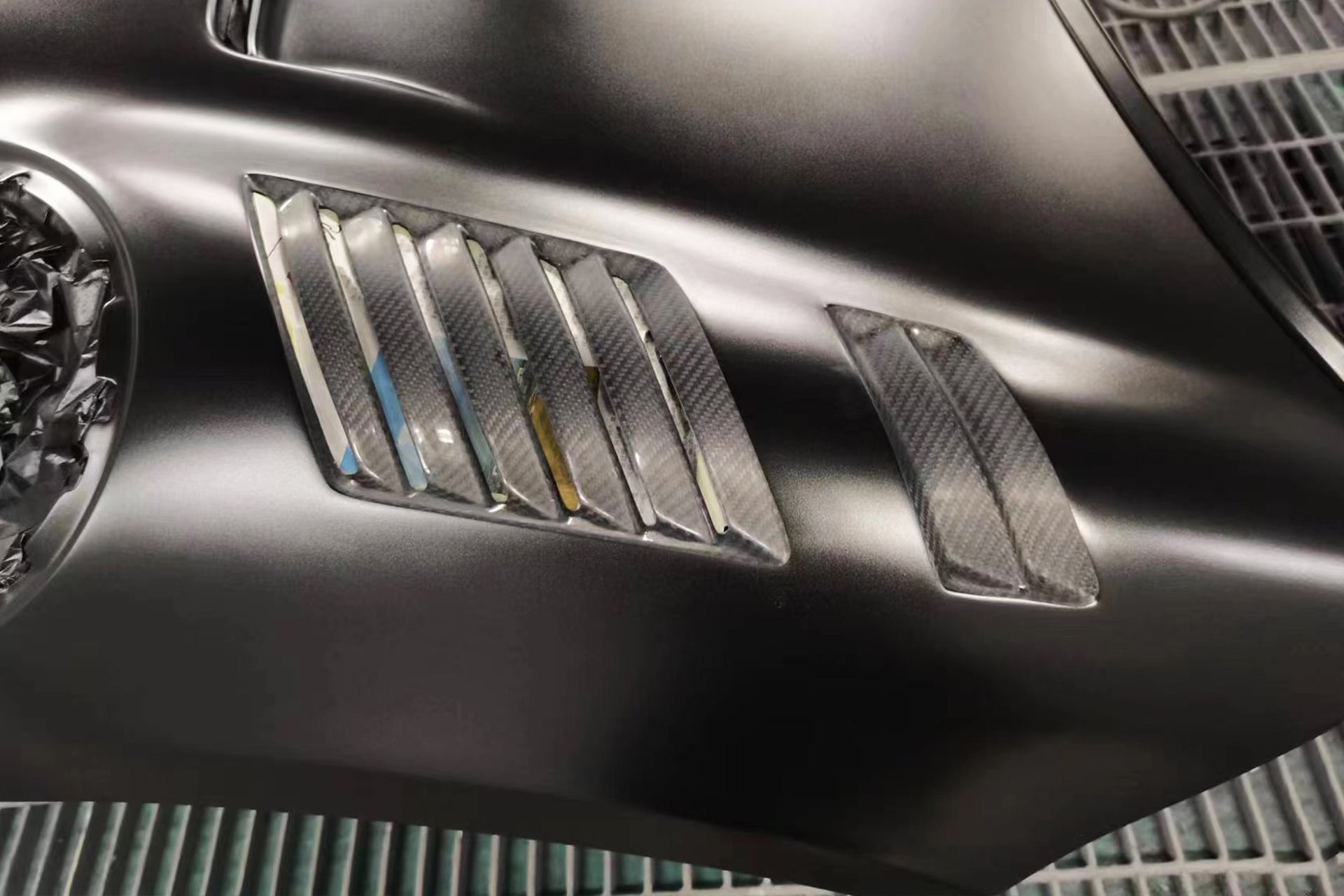 FRP is NOT Carbon Fiber and is a composite material of carbon polymers and fiberglass. Coming in a fresh sanded and primed finish, FRP is ready for paint or wrap! Carbon Fiber, depending on the brand and part, can be offered in Pre-Preg or Vacuum Carbon. Carbon Fiber is a woven pattern of carbon fibers, standard in a 3k weave.